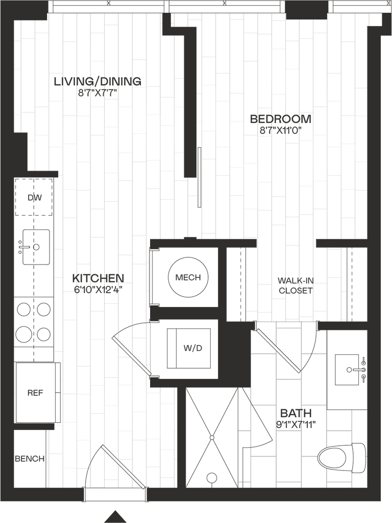 Estudio, 1 Baño, 498 pies²Disponible AhoraGalería del Modelo