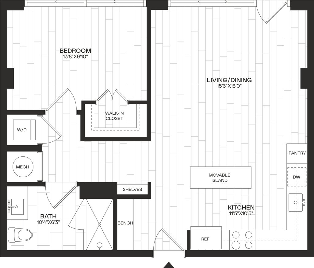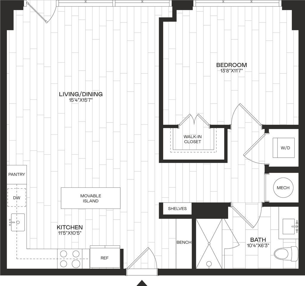 A6 - Plano 1 Unidad de apartamento: 4-521Modelo de apartamento: A6$1,973Estudio, 1 Baño, 527 sq ftDisponible Ahora![]()