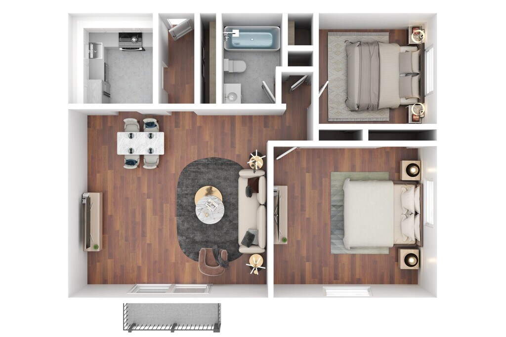 2 Dormitorios, 1 Baño, 977 pies²Galería del Modelo