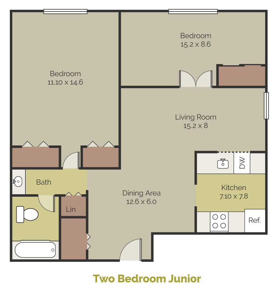 Two Bedroom Junior - Plano 1 2 Dormitorios