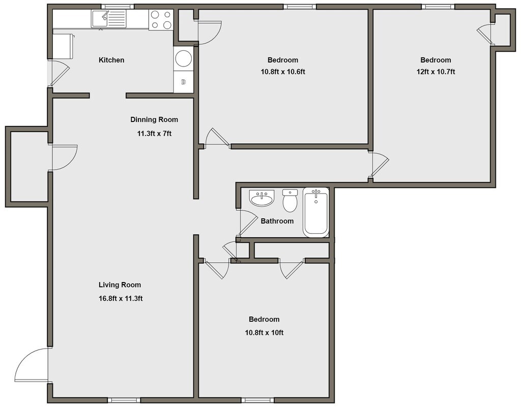 3 Dormitorios, 1 Baño, 1035 pies²Galería del Modelo