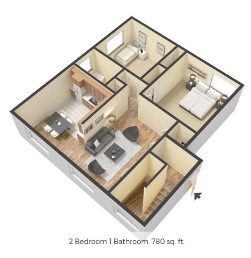 Modelo de apartamento: 2 Bedroom 1 Bathroom2 Dormitorios, 1 Baño, 780 sq ftDisponible Ahora![]()