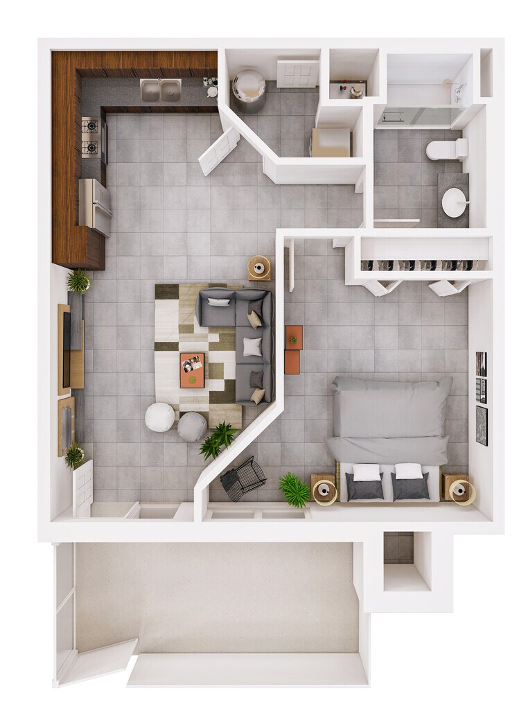 1 Dormitorio, 1 Baño, 591-701 pies²Galería del Modelo