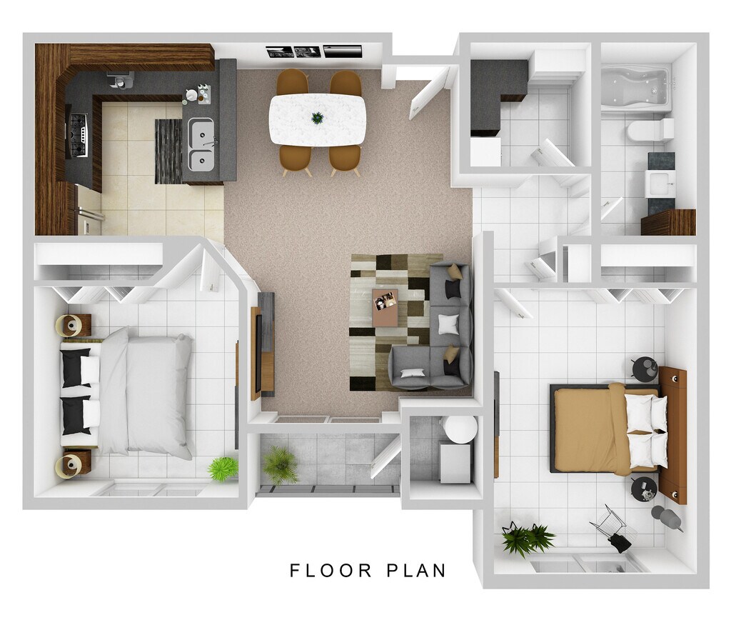 Modelo de apartamento: 2 Bed 1 BathLlame para Precios2 Dormitorios, 1 Baño, 939-994 sq ftNo Disponible2 Bed 1 Bath - Plano 1
