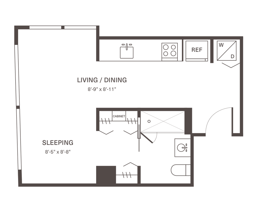 S1 - Plano Unidad de apartamento: 155-1202Modelo de apartamento: S1$2,465Estudio, 1 Baño, 440 sq ftDisponible June 4, 20261 Dormitorio