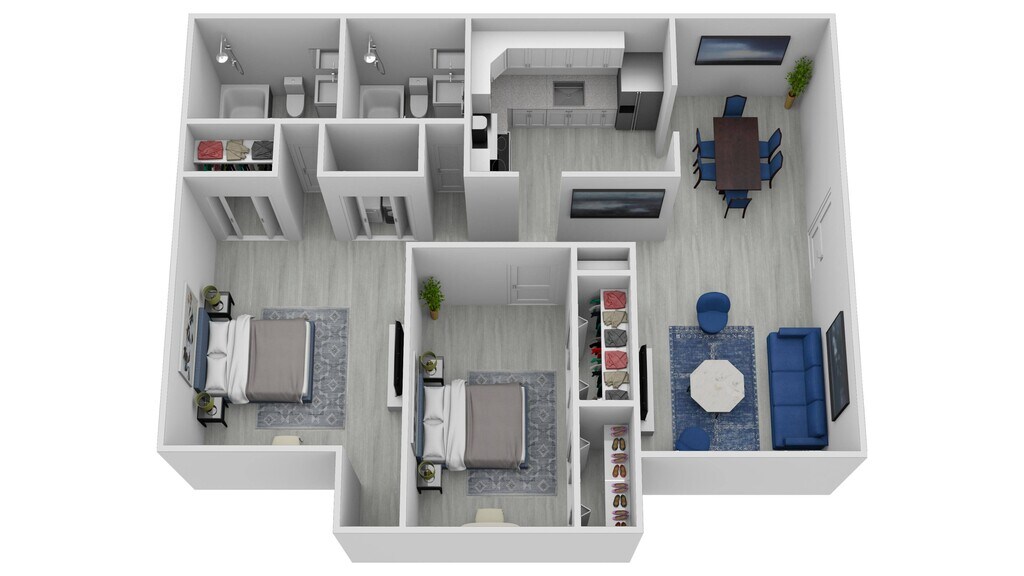 2 Dormitorios, 2 Baños, 1000 pies²Disponible AhoraGalería del Modelo
