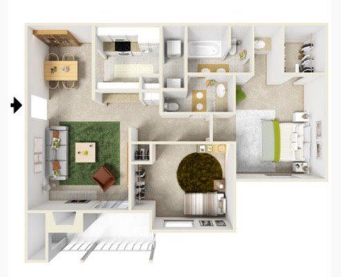 Modelo de apartamento: Small 1 bedroom 1 bathDesde $9241 Dormitorio, 1 Baño, 624 sq ftDisponible Ahora![]()