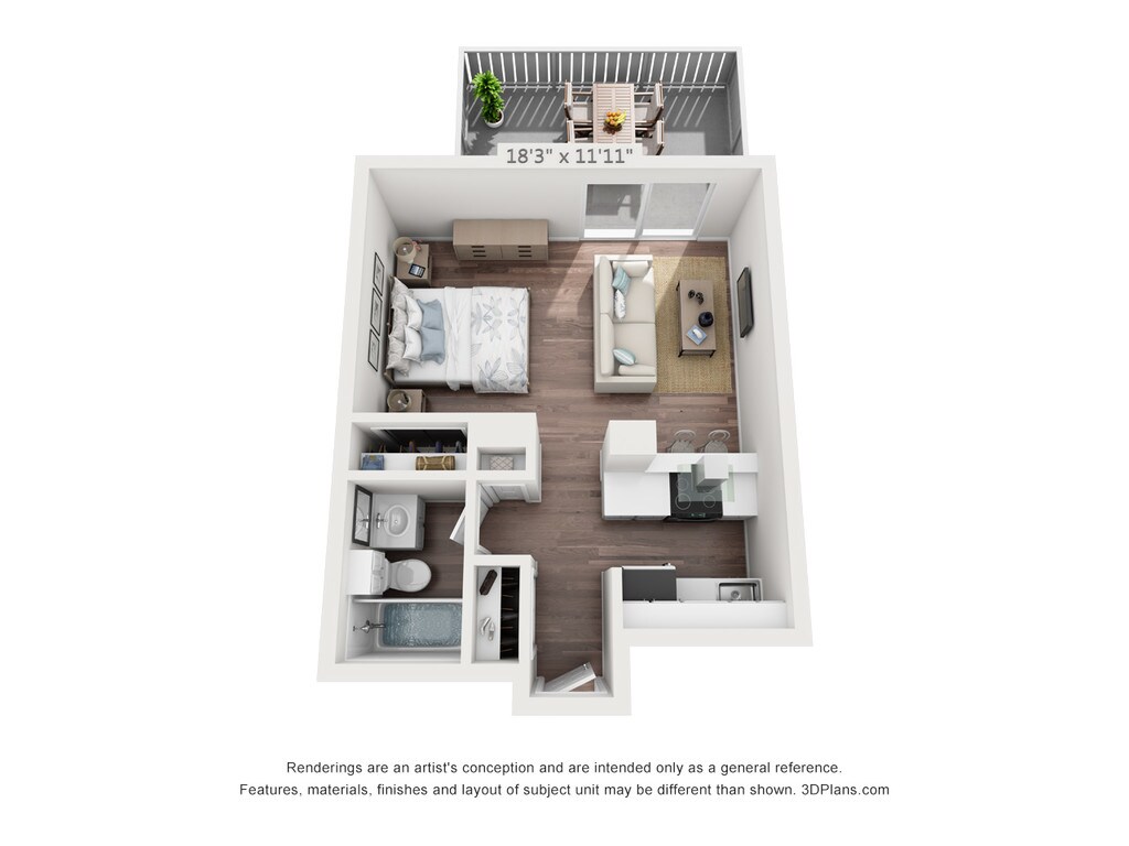 Estudio, 1 Baño, 430 pies²Disponible AhoraGalería del Modelo