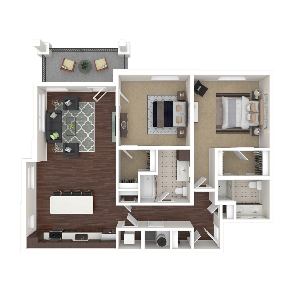 Modelo de apartamento: Two Bedroom - 10$2,7102 Dormitorios, 2 Baños, 1182 sq ftDisponible Ahora![]()