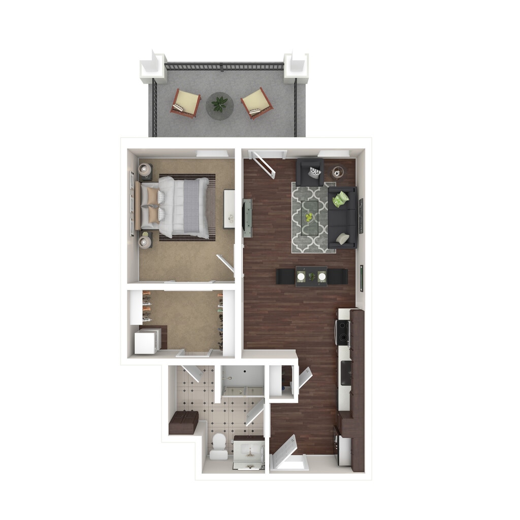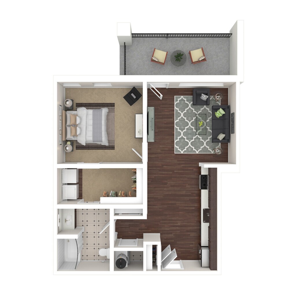 1 Dormitorio, 1 Baño, 730 pies²Disponible AhoraGalería del Modelo