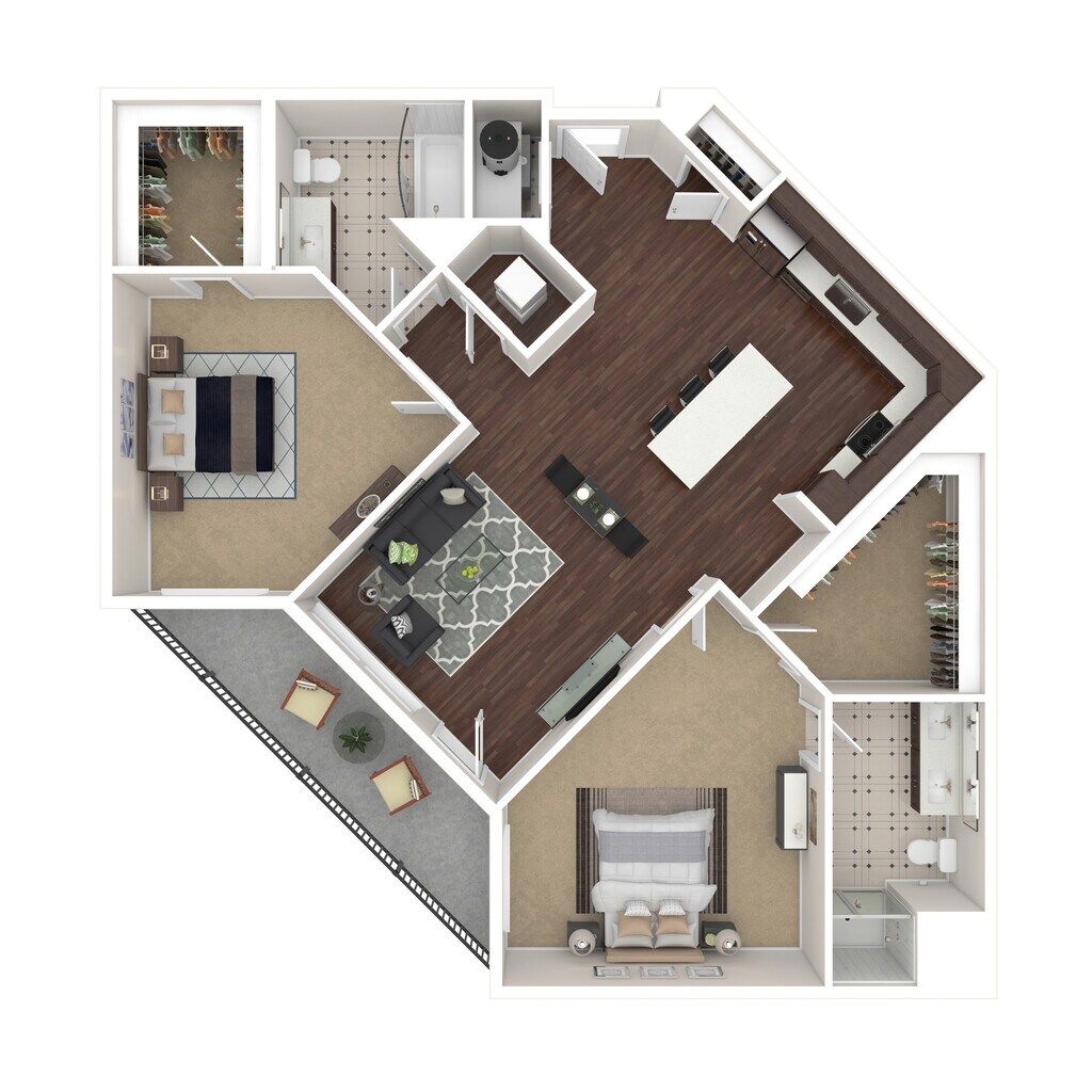 Modelo de apartamento: One Bedroom - 5$2,1651 Dormitorio, 1 Baño, 689 sq ftDisponible Ahora![]()