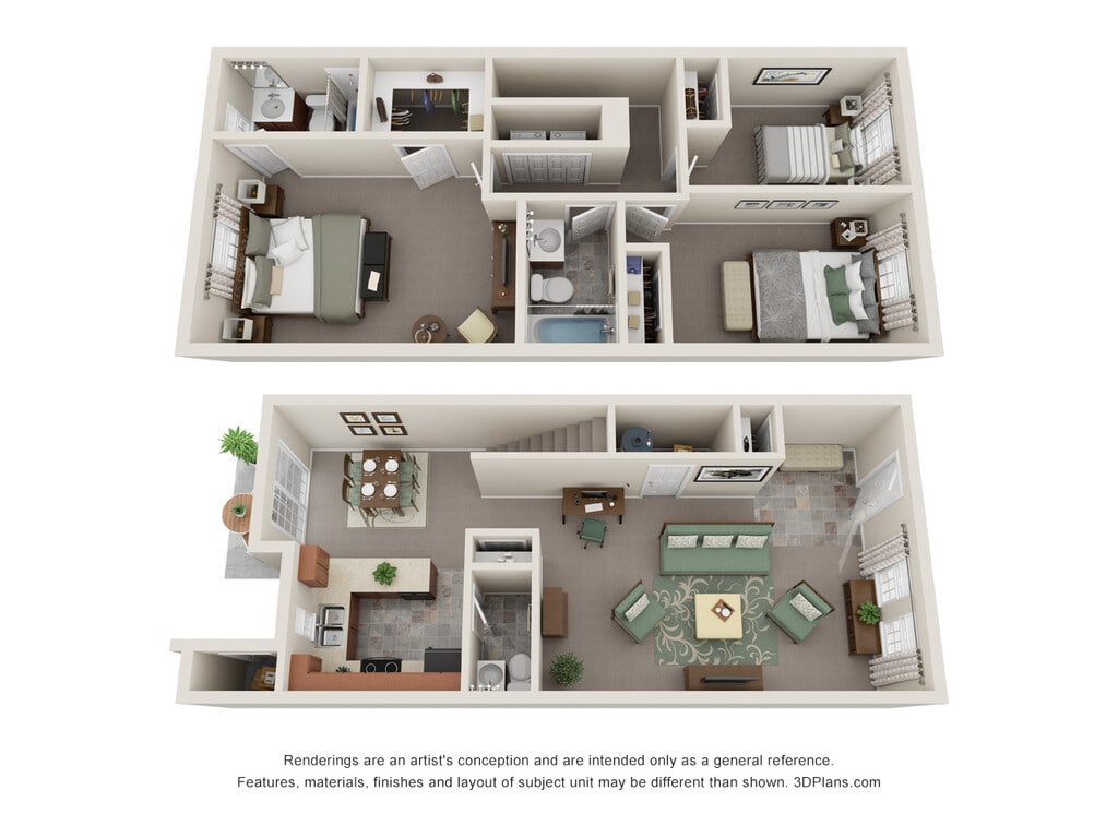 Modelo de apartamento: Exeter3 Dormitorios, 3 Baños, 1553 sq ftNo Disponible![]()