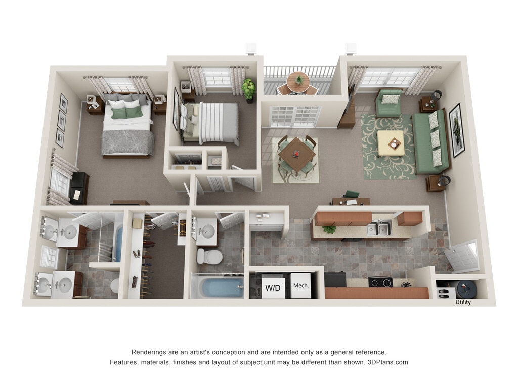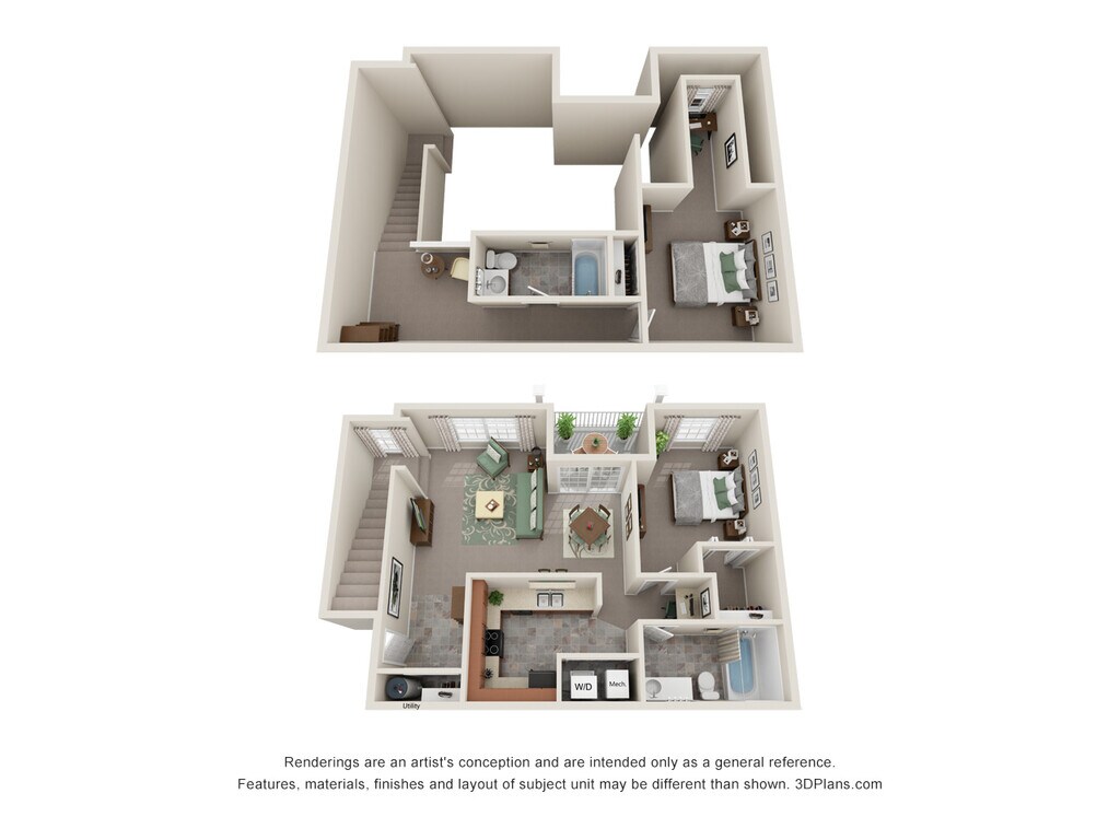 2 Dormitorios, 2 Baños, 1068 pies²Galería del Modelo