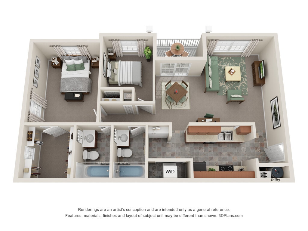 Modelo de apartamento: Fairfield2 Dormitorios, 2 Baños, 1068 sq ftNo Disponible![]()