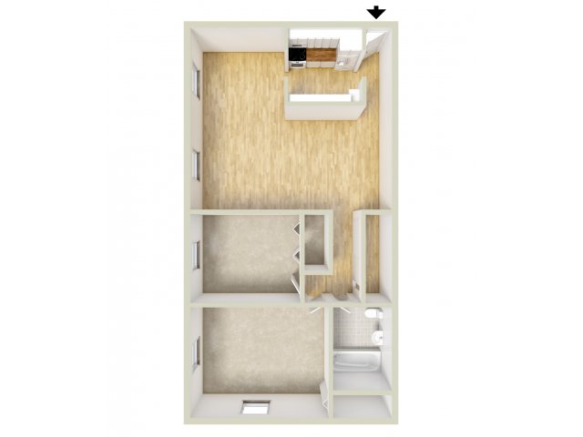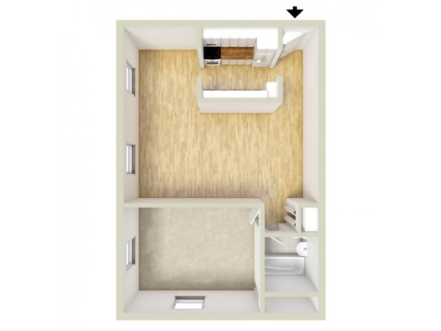 1 Dormitorio, 1 Baño, 603 pies²Disponible AhoraGalería del Modelo