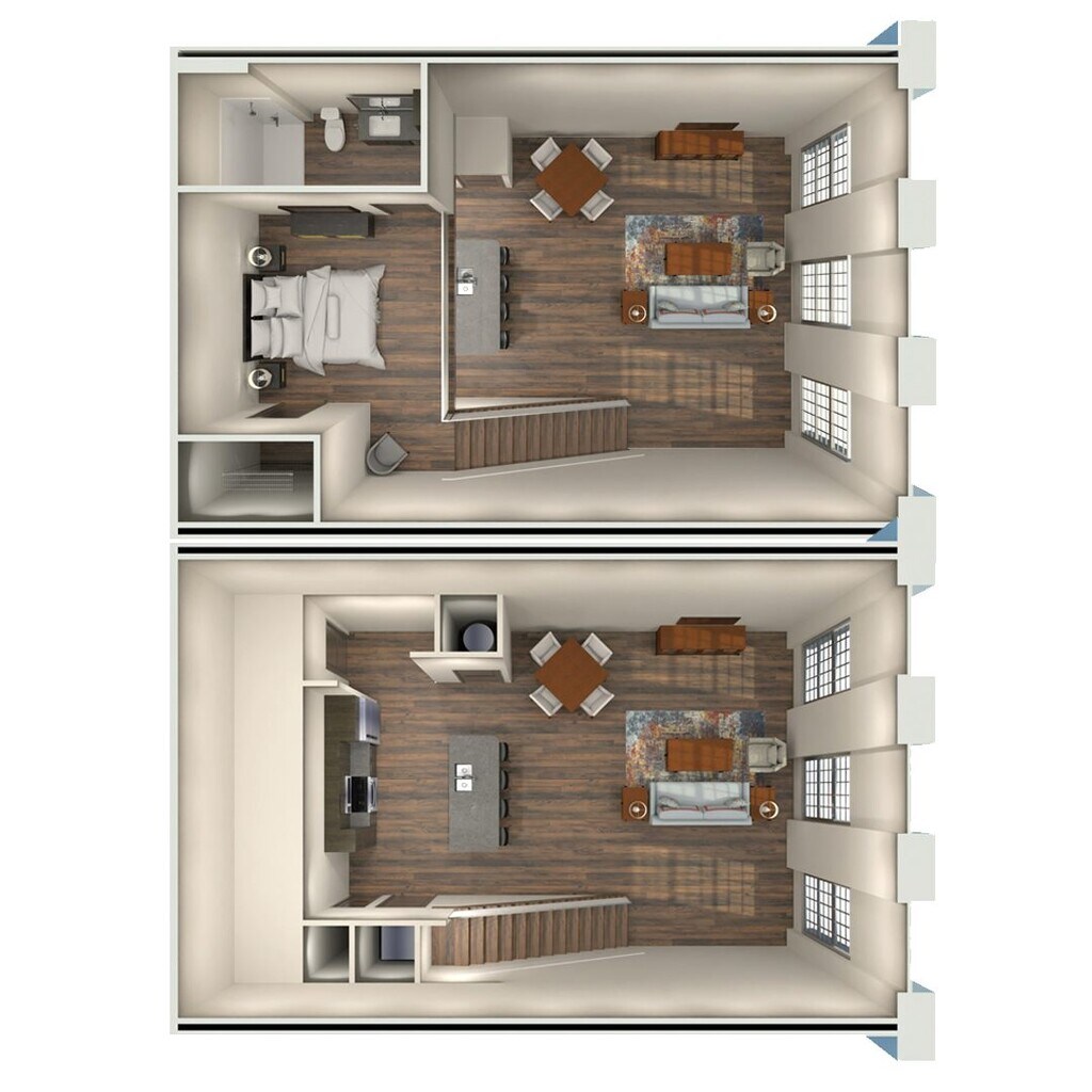 Modelo de apartamento: H - LoftDesde $1,3251 Dormitorio, 1 Baño, 666-1069 sq ftDisponible Ahora![]()