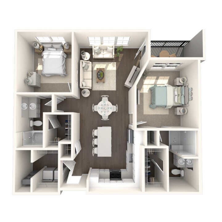 Modelo de apartamento: 2 bedroom, 2 bathroomDesde $1,8002 Dormitorios, 2 Baños, 1014-1069 sq ftNo Disponible![]()