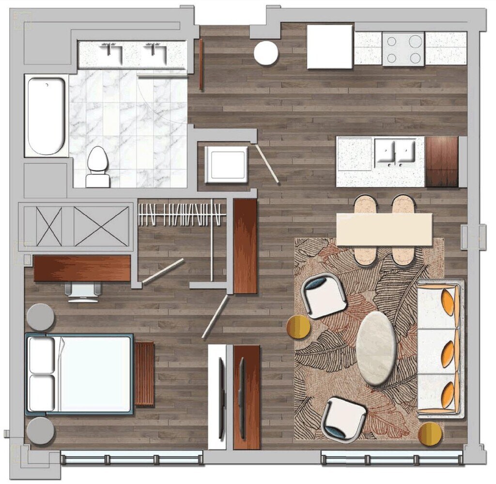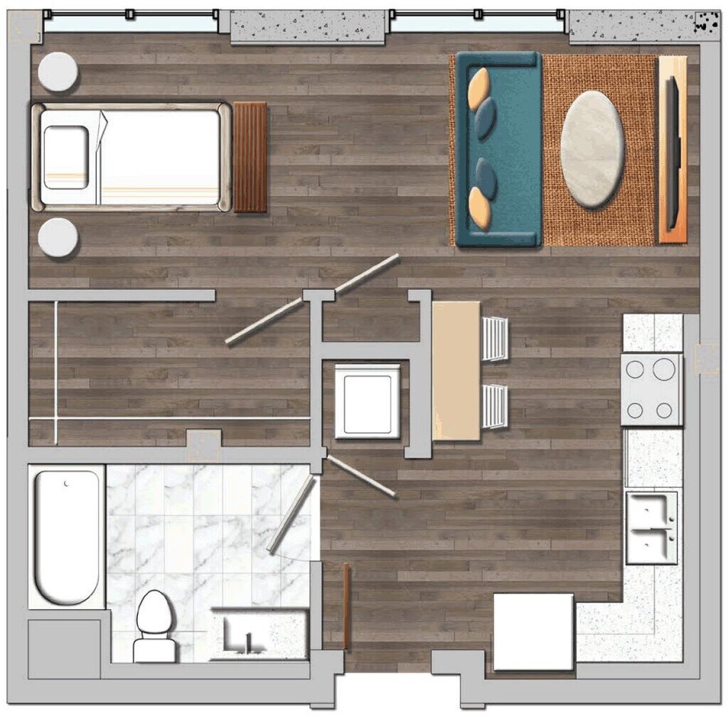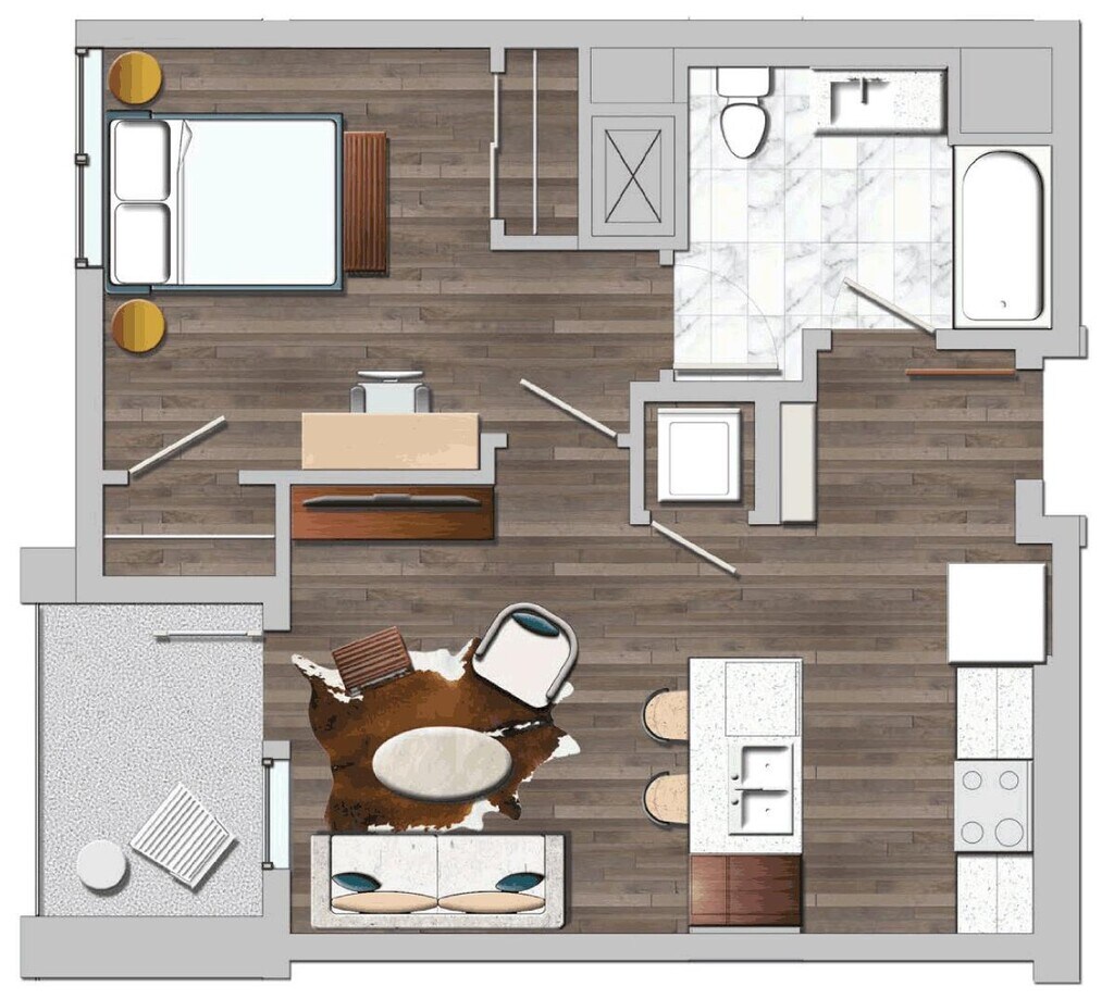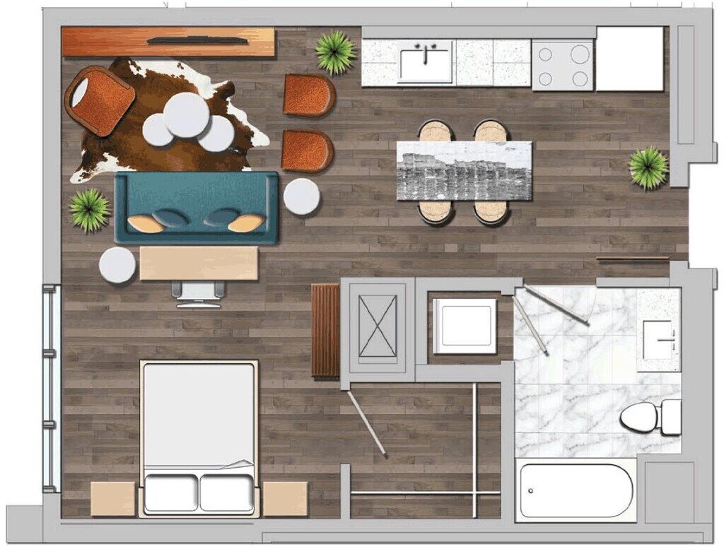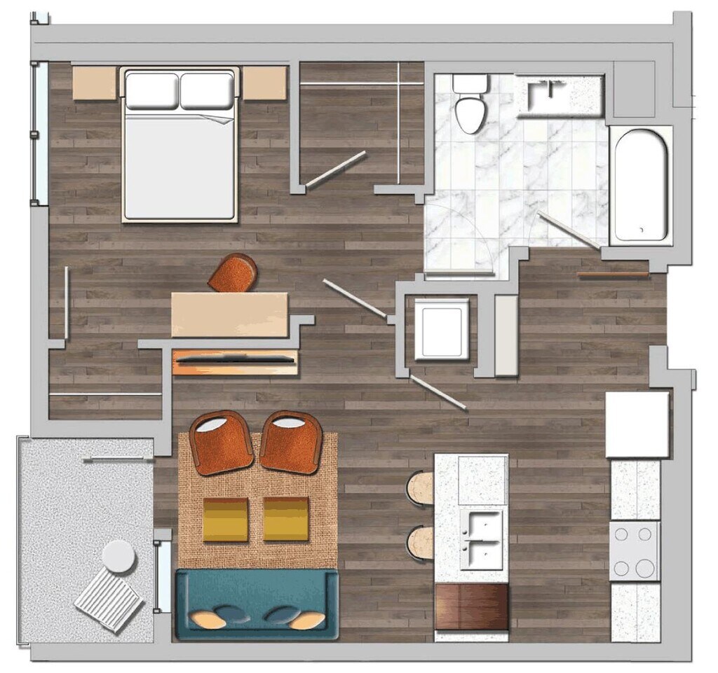 Modelo de apartamento: Studio ADesde $1,895Estudio, 1 Baño, 505-520 sq ftDisponible Ahora![]()