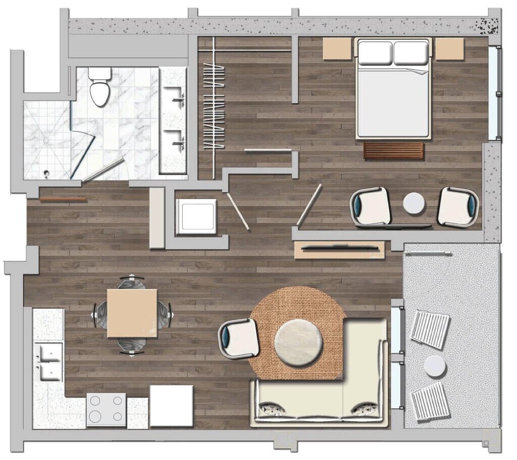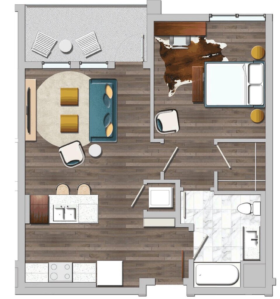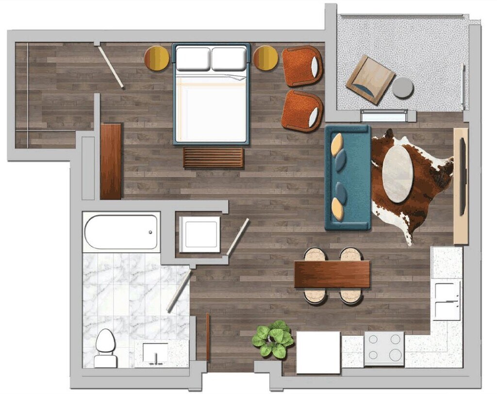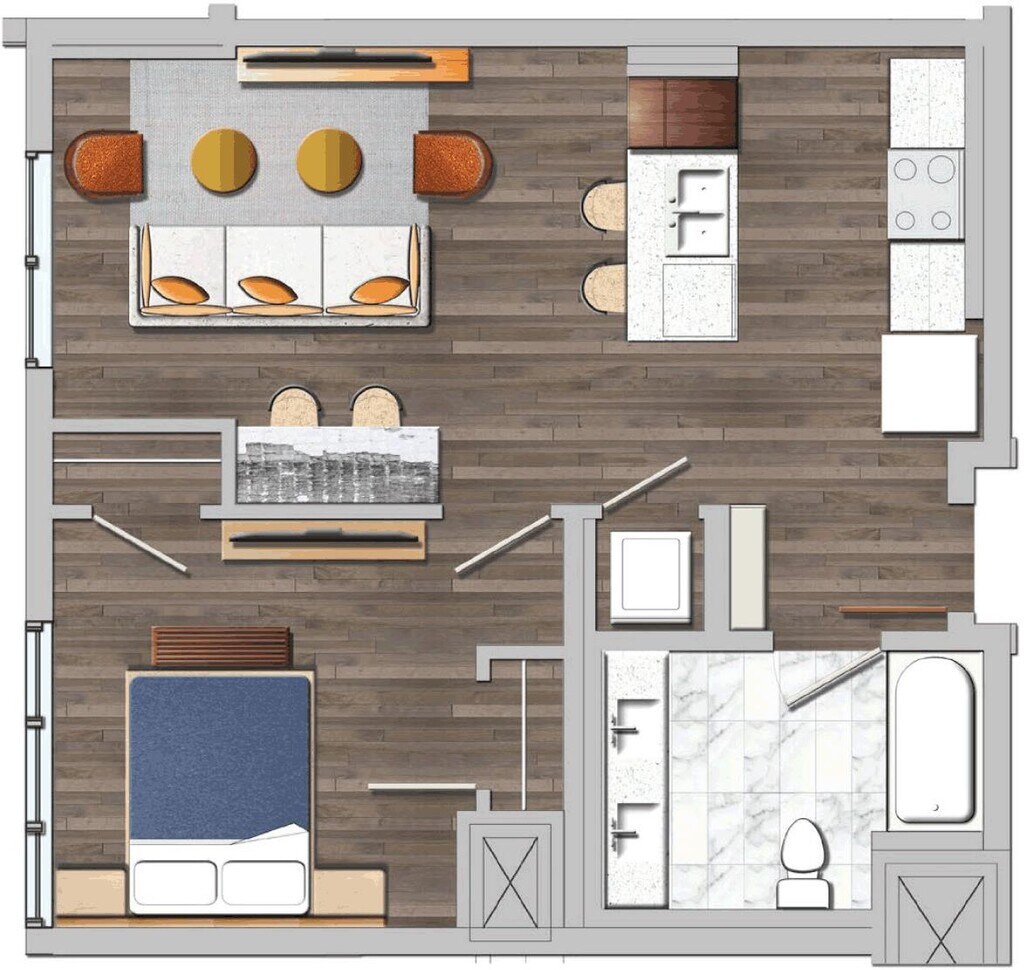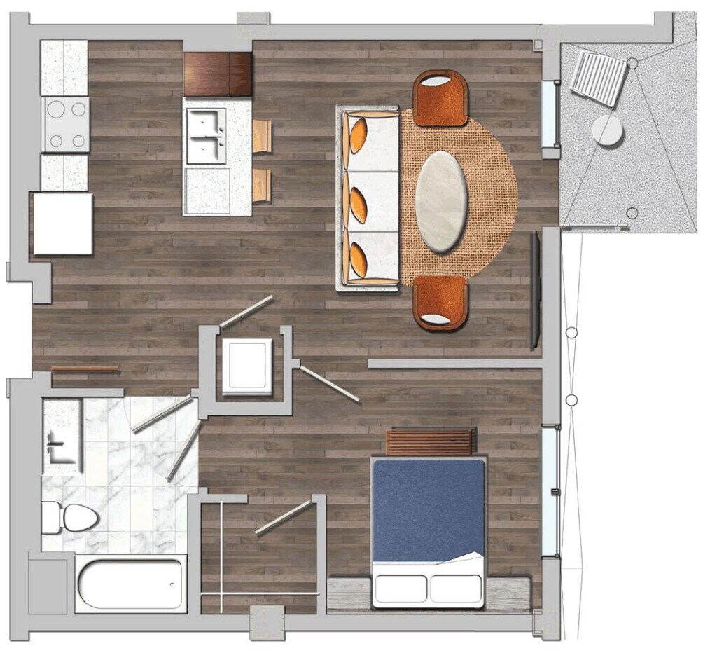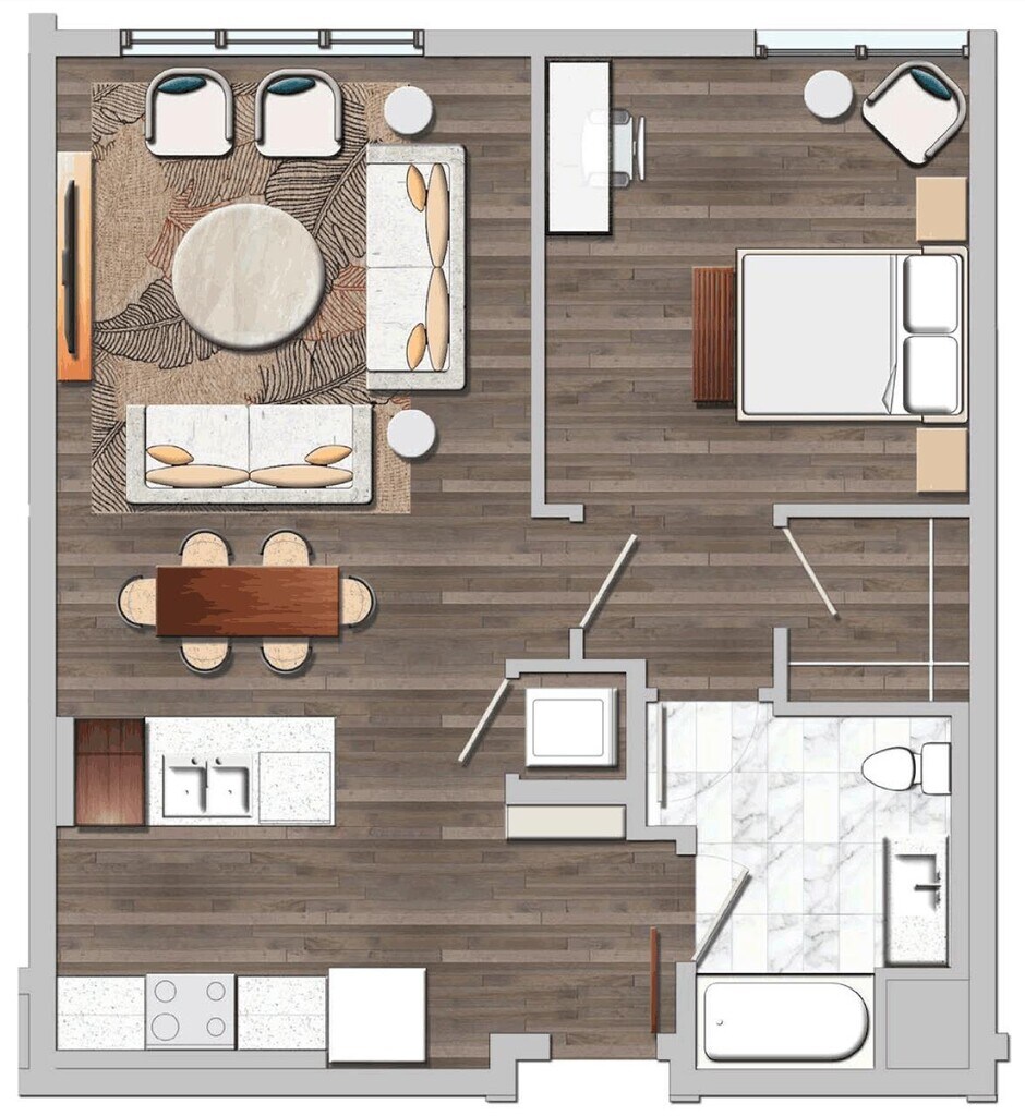 Modelo de apartamento: Studio ADesde $1,895Estudio, 1 Baño, 505-520 sq ftDisponible Ahora![]()