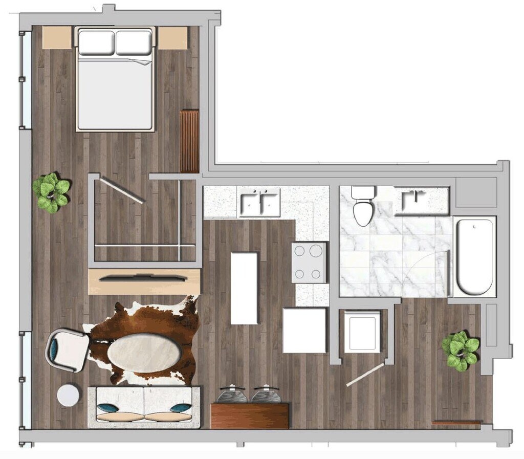 Estudio, 1 Baño, 570 pies²Disponible AhoraGalería del Modelo