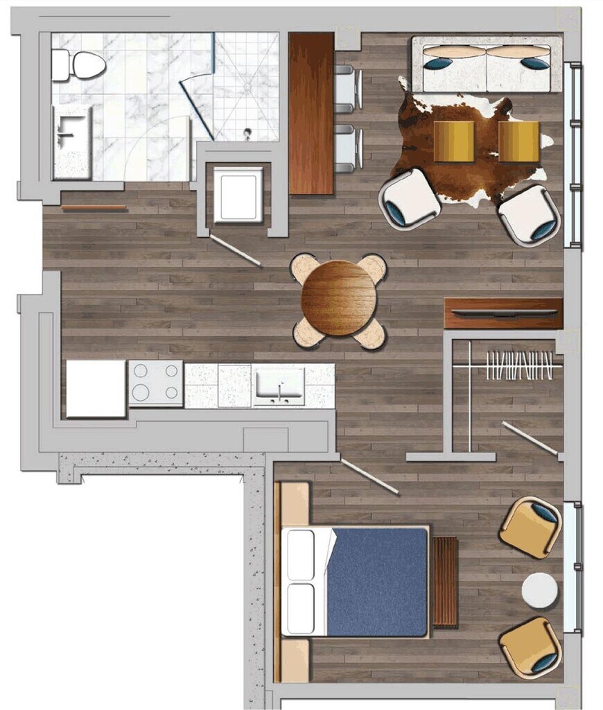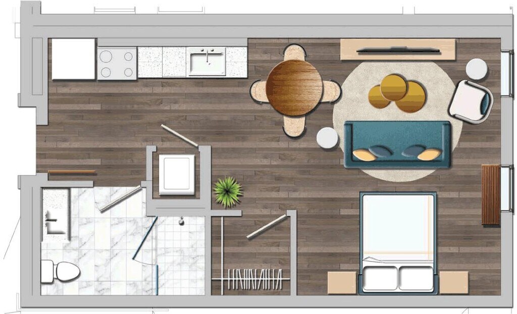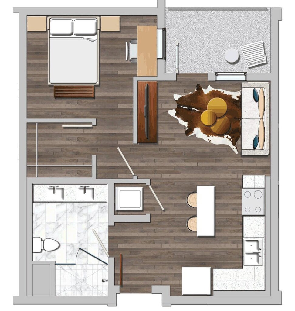 Estudio, 1 Baño, 505-520 pies²Disponible AhoraGalería del Modelo
