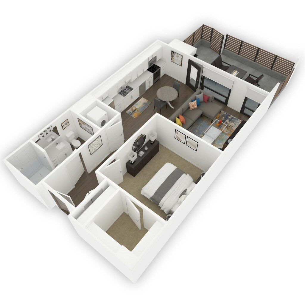 1 Dormitorio, 1 Baño, 747 pies²Disponible AhoraGalería del Modelo
