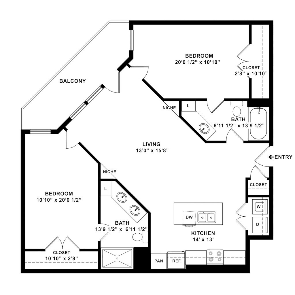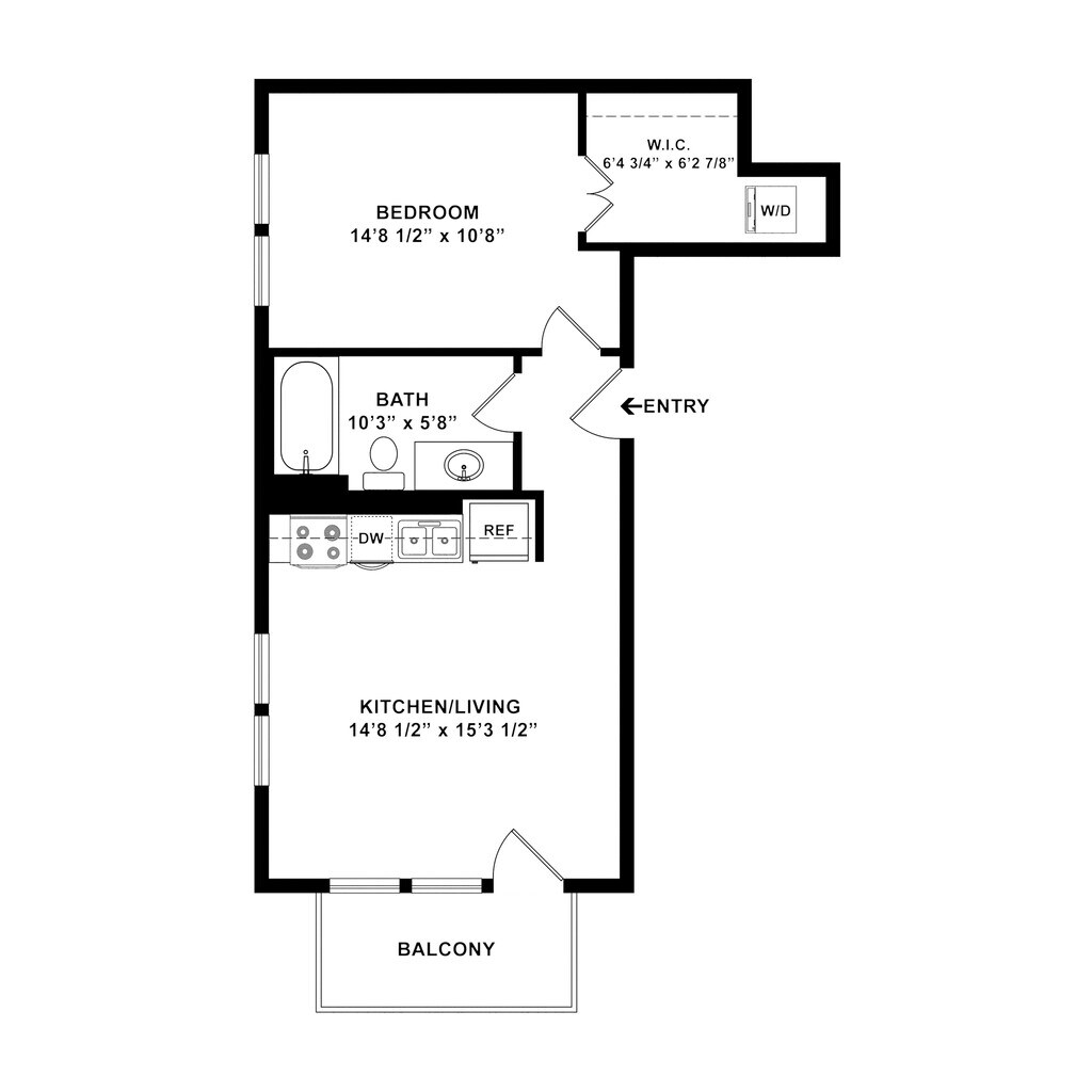 Eagle - Plano 2 Unidad de apartamento: W433Modelo de apartamento: Eagle$1,6291 Dormitorio, 1 Baño, 759 sq ftDisponible AhoraLark