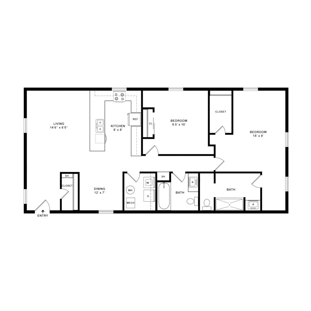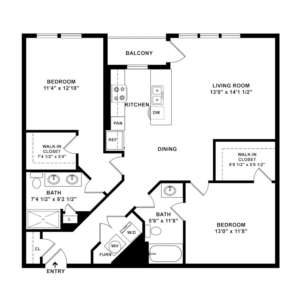 Hawthorn - Plano 2 Unidad de apartamento: E220Modelo de apartamento: Hawthorn$1,5991 Dormitorio, 1 Baño, 811 sq ftDisponible AhoraEagle