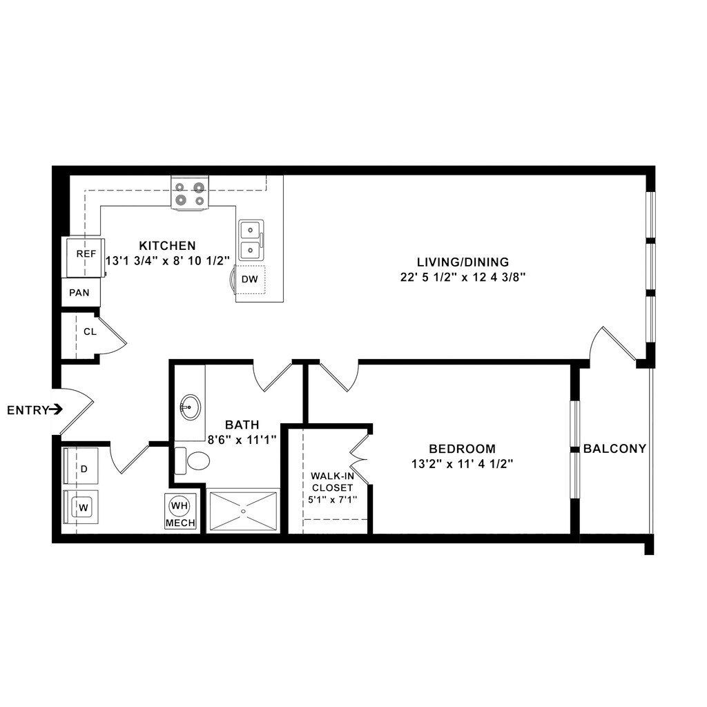 1 Dormitorio, 1 Baño, 759 pies²Disponible AhoraGalería del Modelo