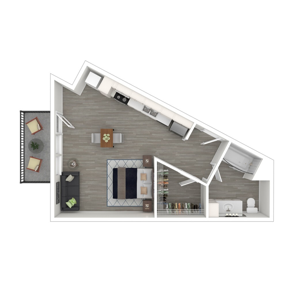 Modelo de apartamento: AlexanderDesde $1,255Estudio, 1 Baño, 466 sq ftDisponible April 20, 2026![]()