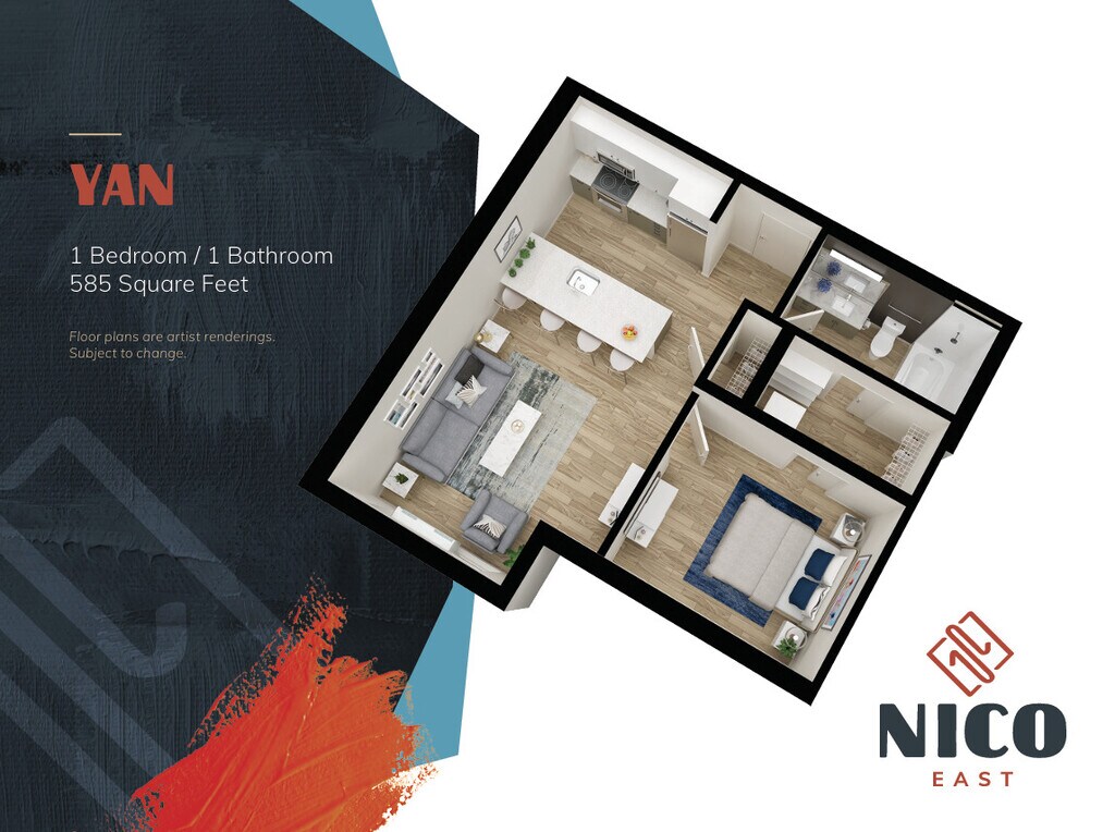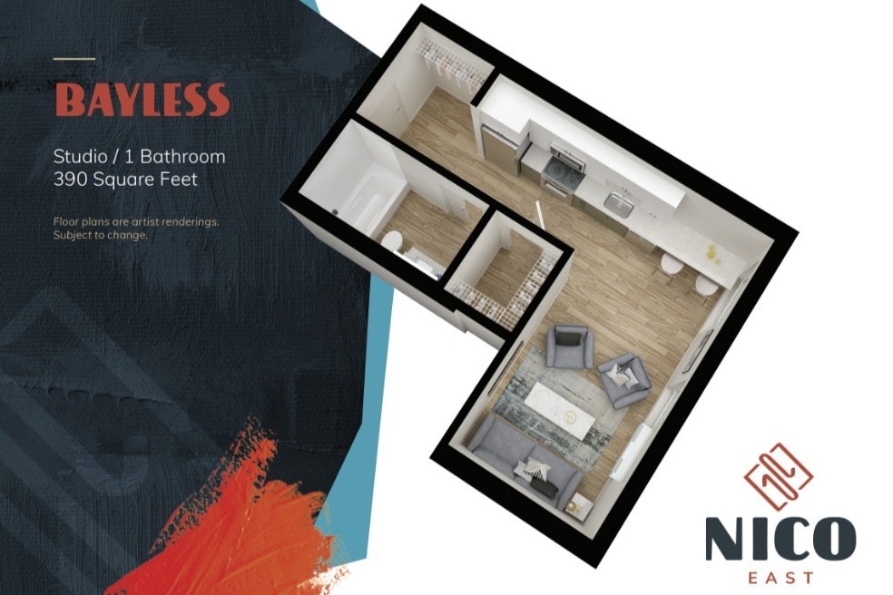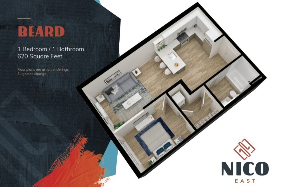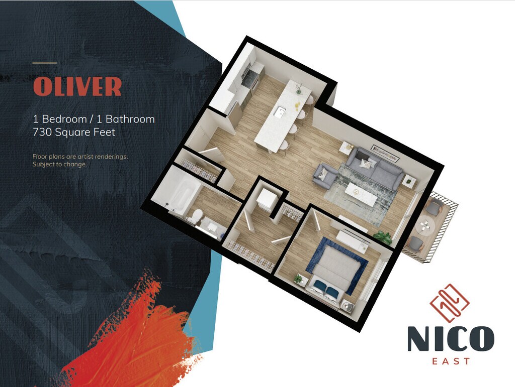 Nico East ofrece apartamentos de Estudio a 3 Dormitorios desde $960 con 375–995 pies cuadrados. Aquí está el precio actual y la disponibilidad: