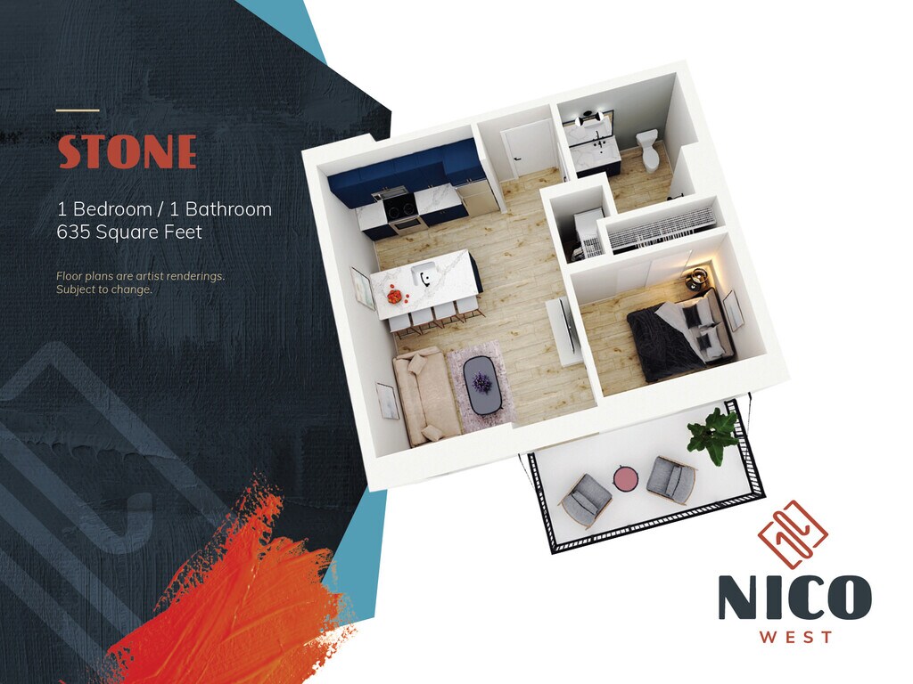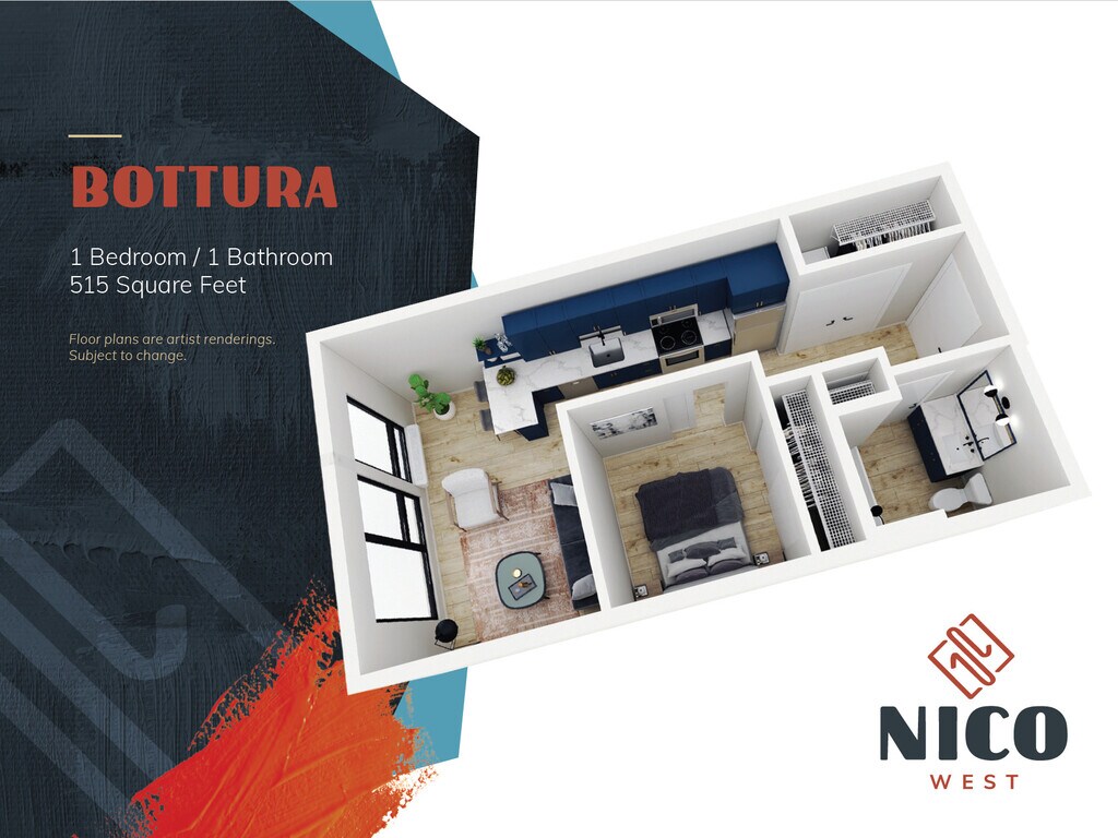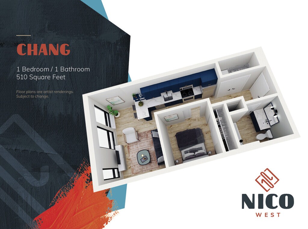 Modelo de apartamento: Chang$1,1311 Dormitorio, 1 Baño, 510 sq ftDisponible Ahora![]()