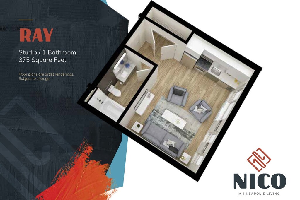 Modelo de apartamento: RayDesde $960Estudio, 1 Baño, 375 sq ftDisponible Ahora![]()