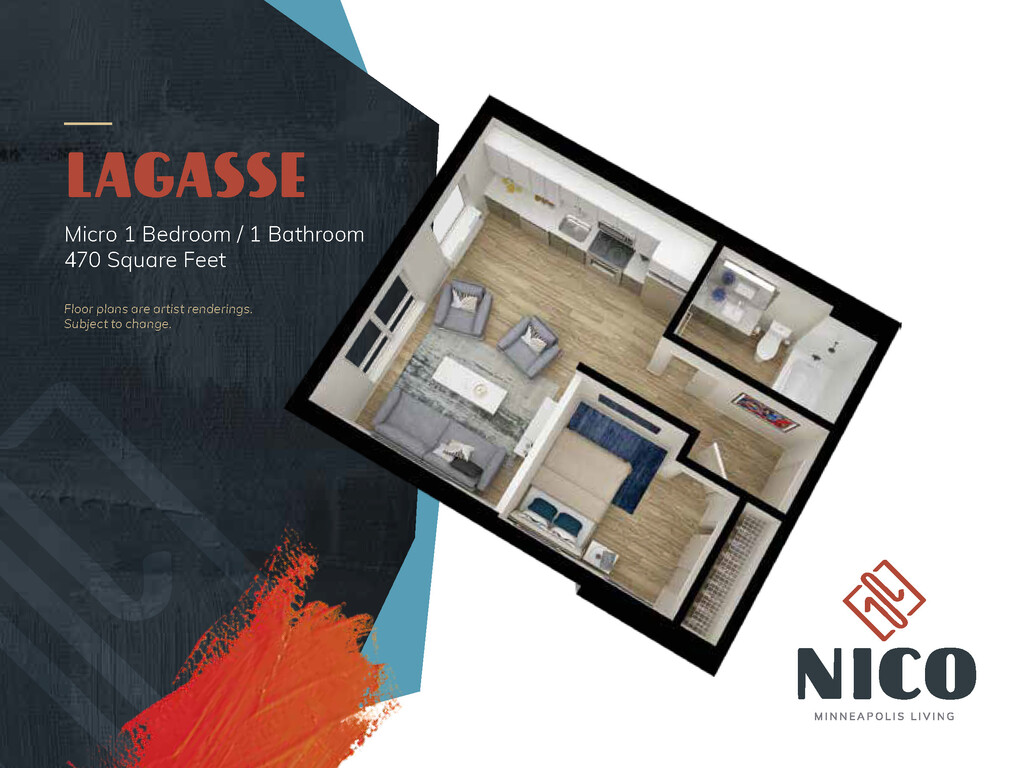 Modelo de apartamento: Lagasse$1,0461 Dormitorio, 1 Baño, 470 sq ftDisponible Ahora![]()