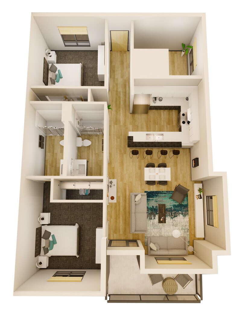 2 Dormitorios, 2 Baños, up to 1160 pies²Detalles de Diponibilidad