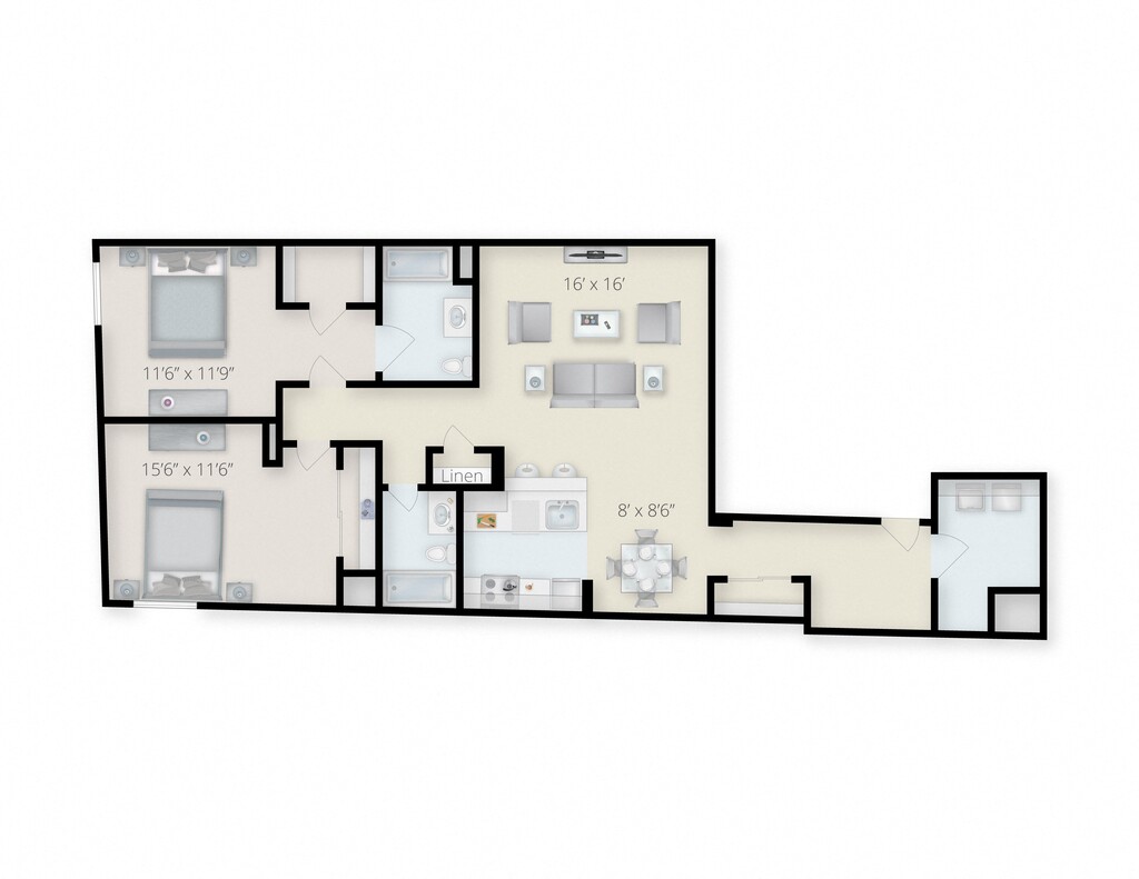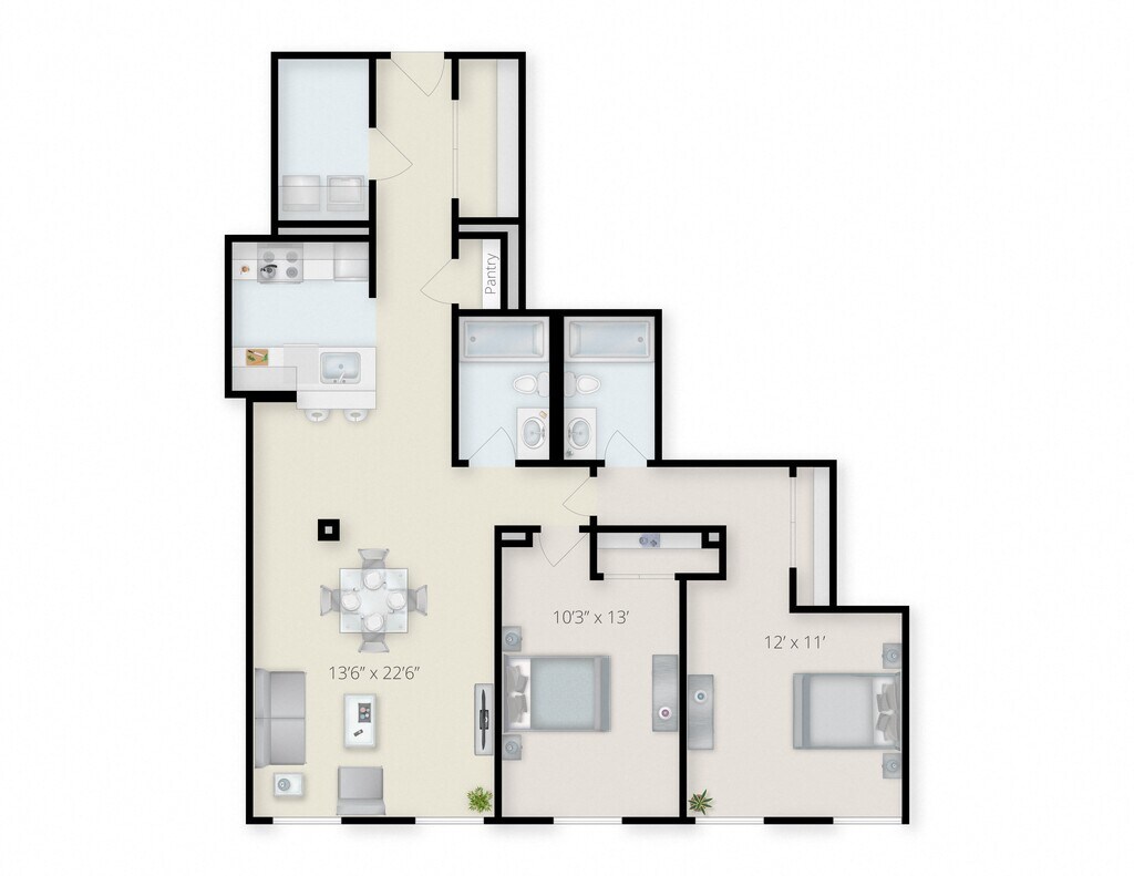 Modelo de apartamento: Two Bedroom One BathDesde $2,4602 Dormitorios, 1 Baño, 816-859 sq ftDisponible Ahora![]()