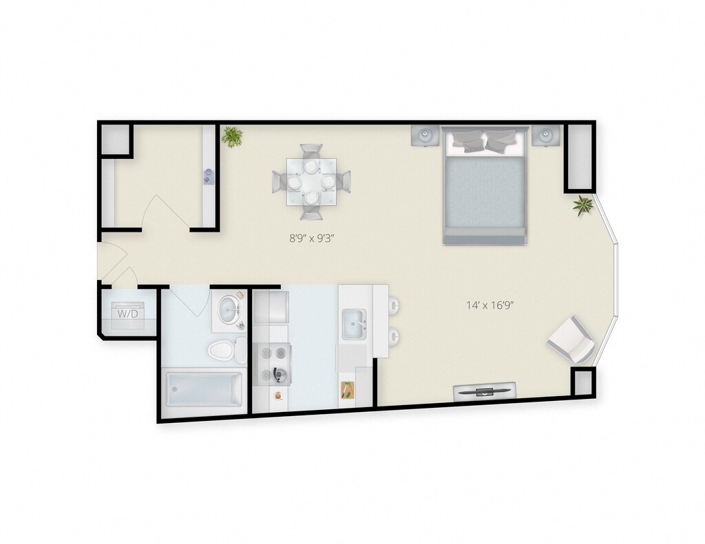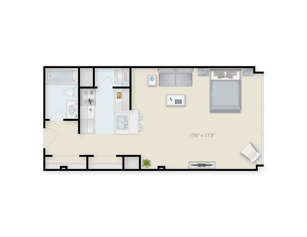 Studio - Plano 1 Unidad de apartamento: FM51-306Modelo de apartamento: Studio$1,555Estudio, 1 Baño, 504 sq ftDisponible December 30, 2025![]()