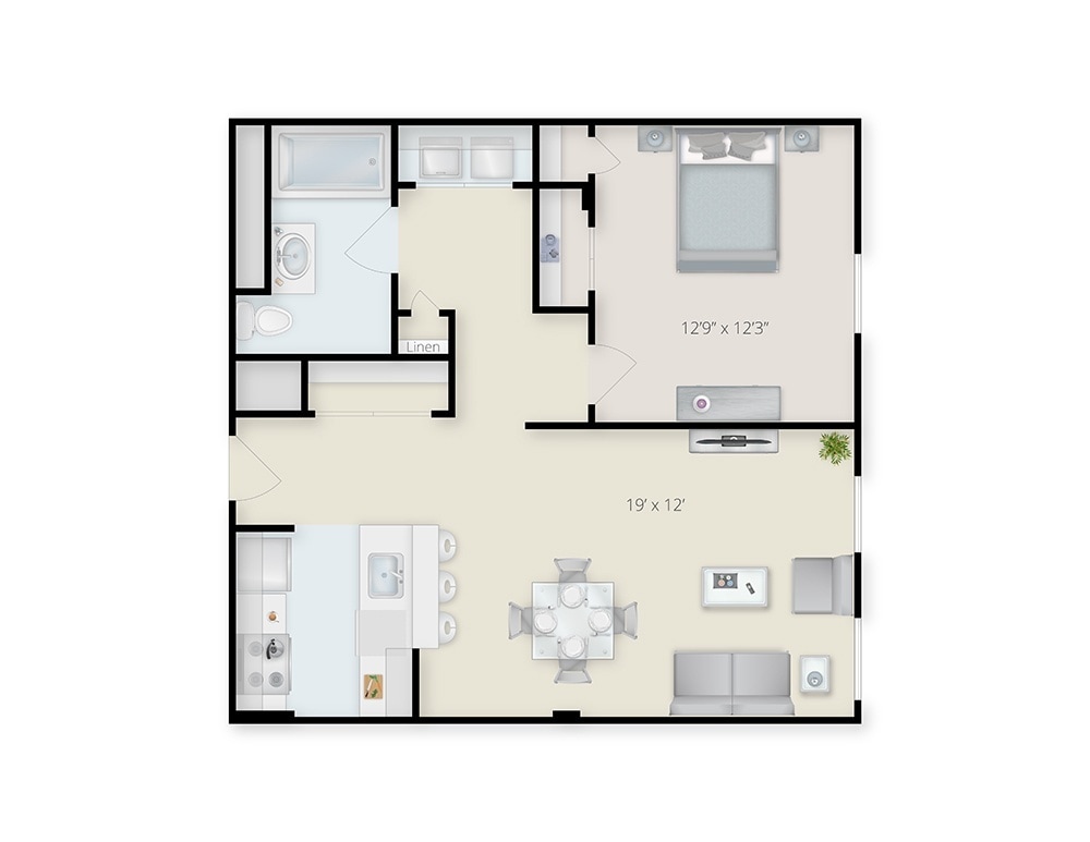 One Bedroom One Bath - Plano 1 2 Dormitorios