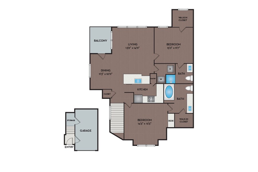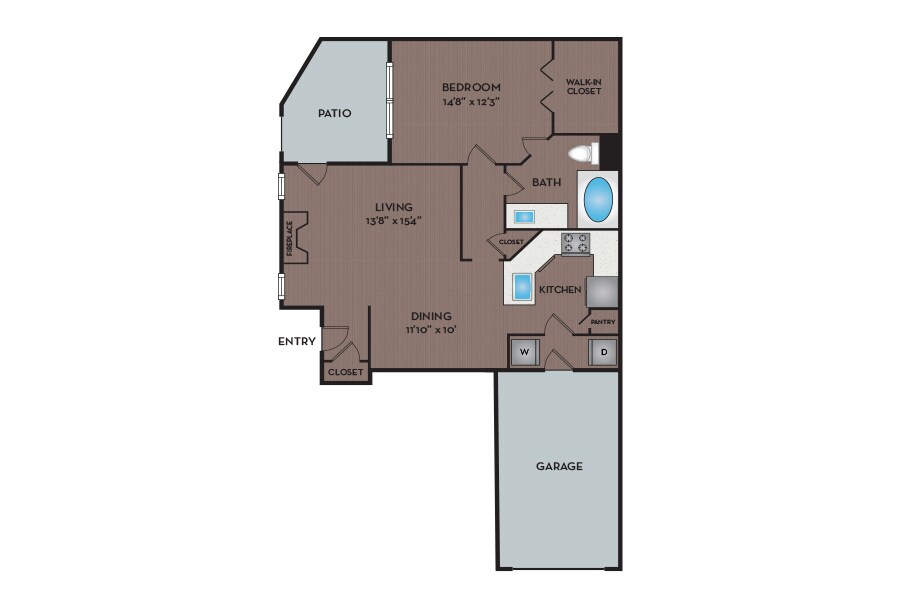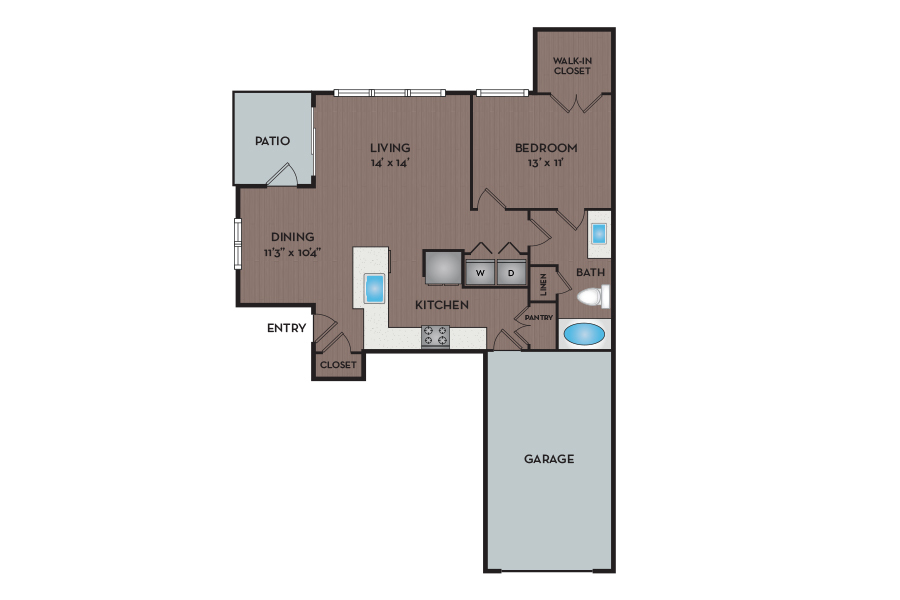 Modelo de apartamento: 11F1Desde $1,3551 Dormitorio, 1 Baño, 857 sq ftDisponible Ahora![]()