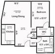 Modelo de apartamento: A21 Dormitorio, 1 Baño, 715-743 sq ftDisponible Ahora![]()