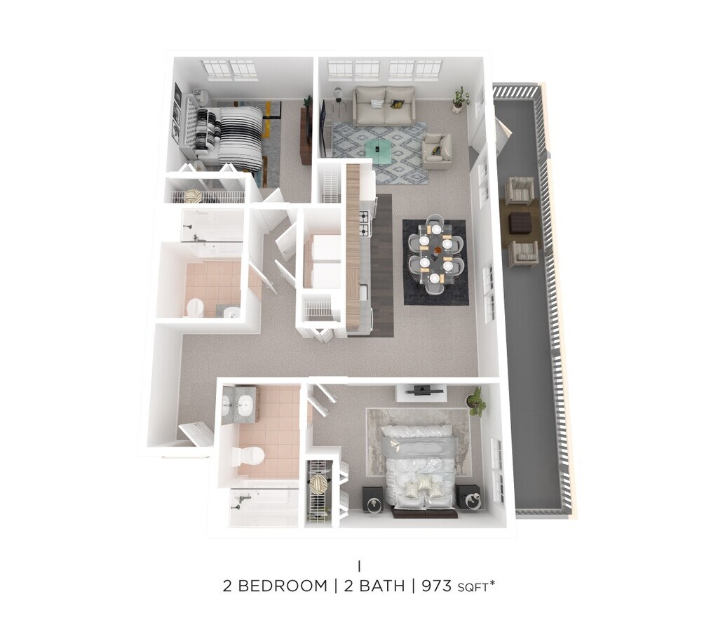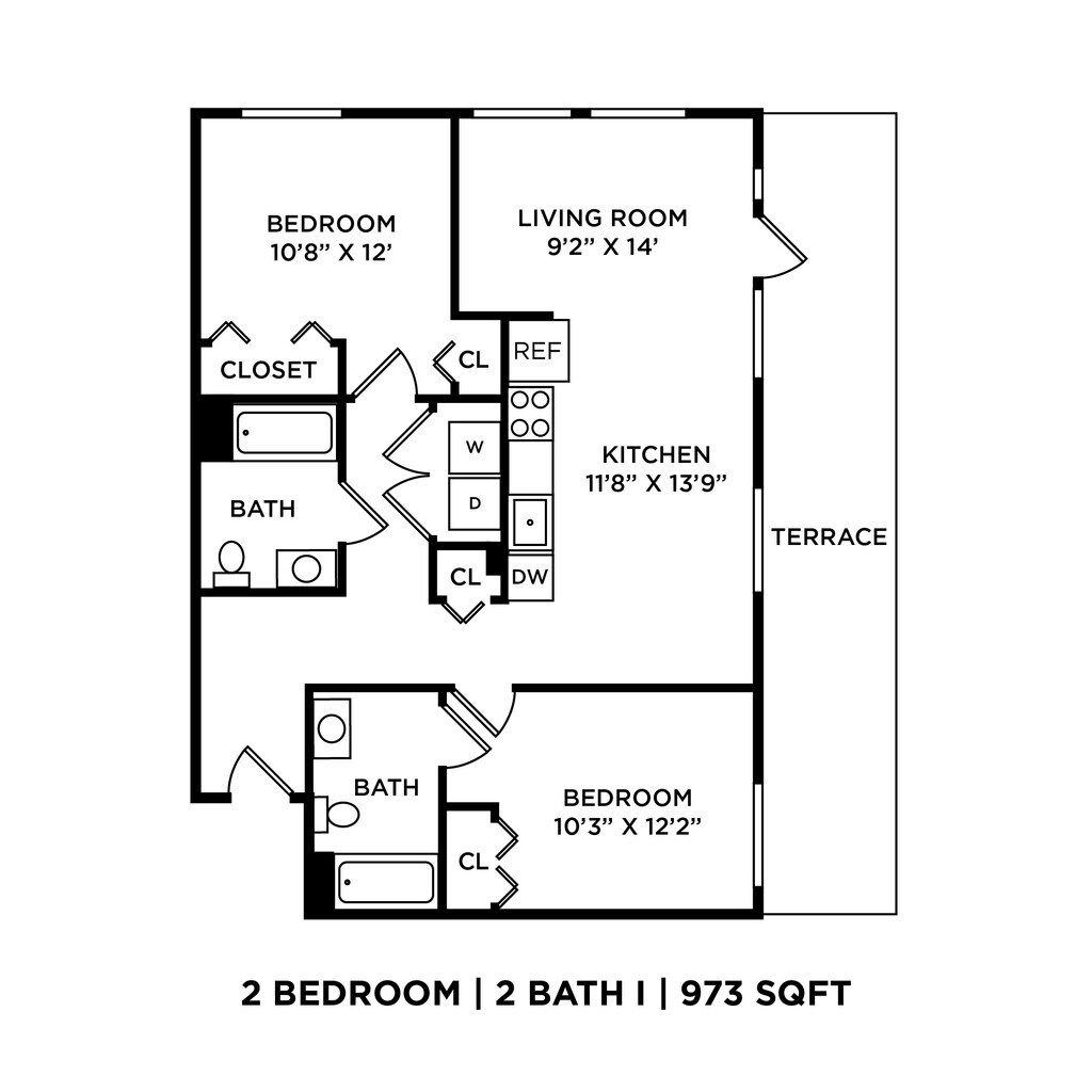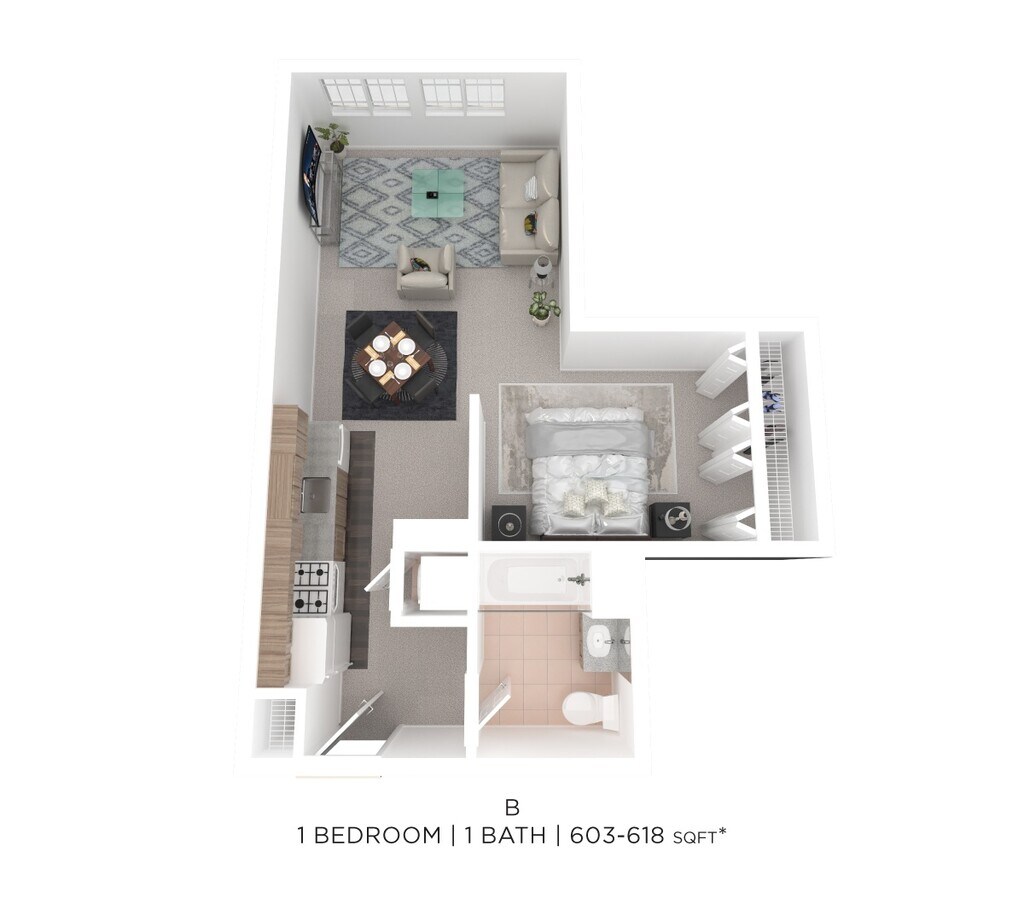 Modelo de apartamento: 1 bed - 603sqftDesde $2,2701 Dormitorio, 1 Baño, 603 sq ftDisponible Ahora![]()