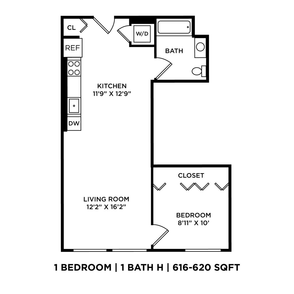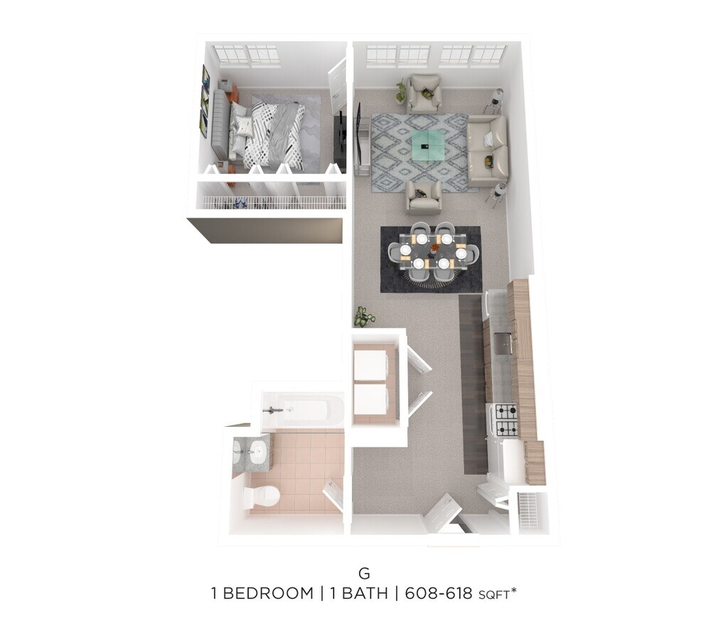 1 Dormitorio, 1 Baño, 620 pies²Disponible Apr 23El más grandeEsta opción tiene las unidades más grandes para este modeloGalería del Modelo