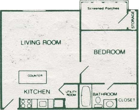 1 Dormitorio, 1 Baño, 705 pies²Galería del Modelo