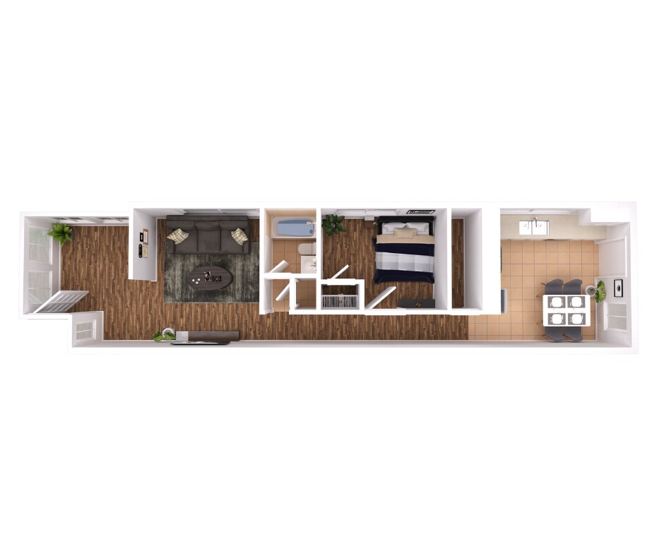 Modelo de apartamento: EuclidDesde $1,4291 Dormitorio, 1 Baño, 570 sq ftNo Disponible![]()