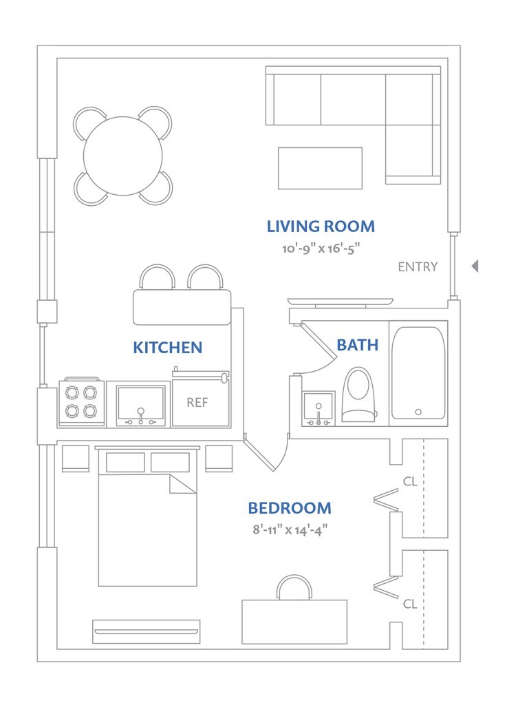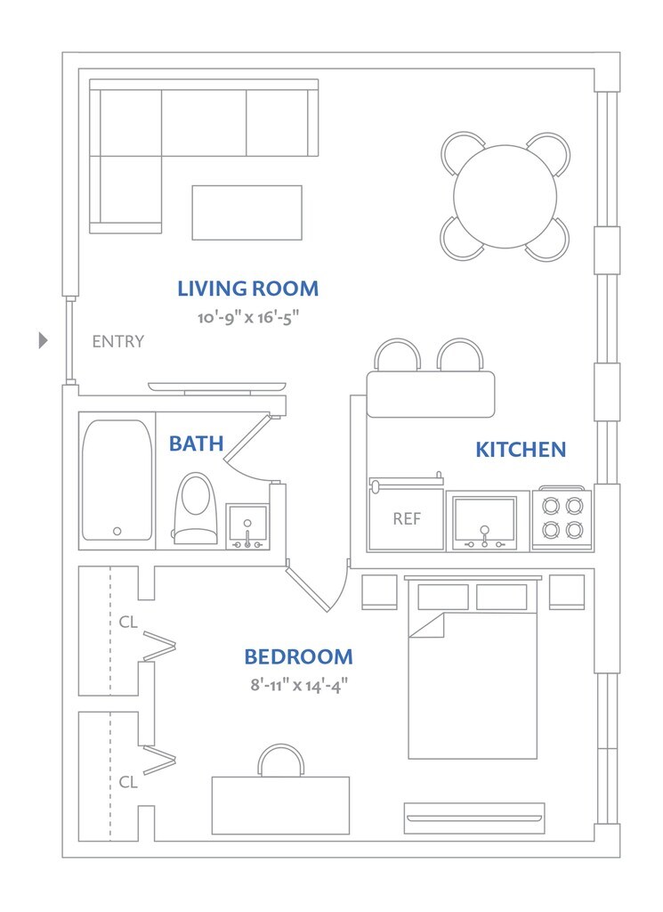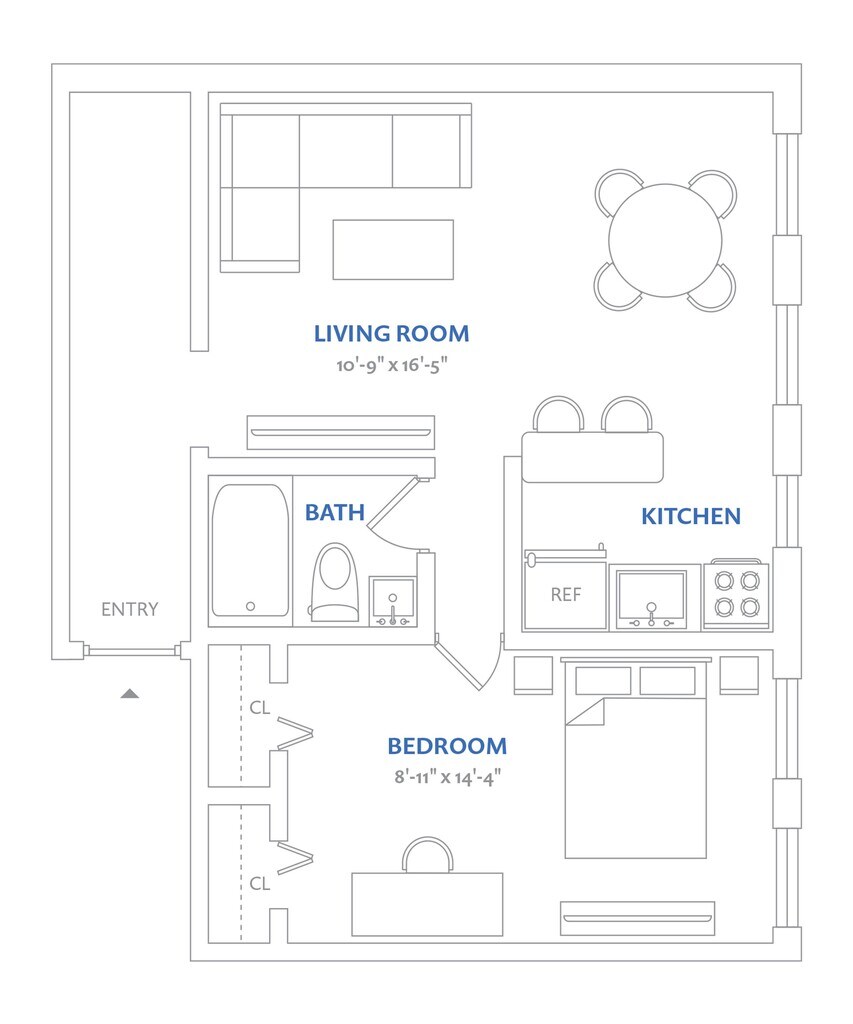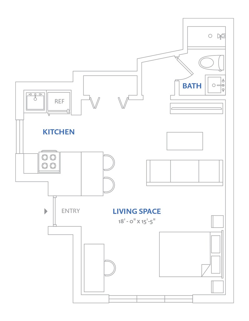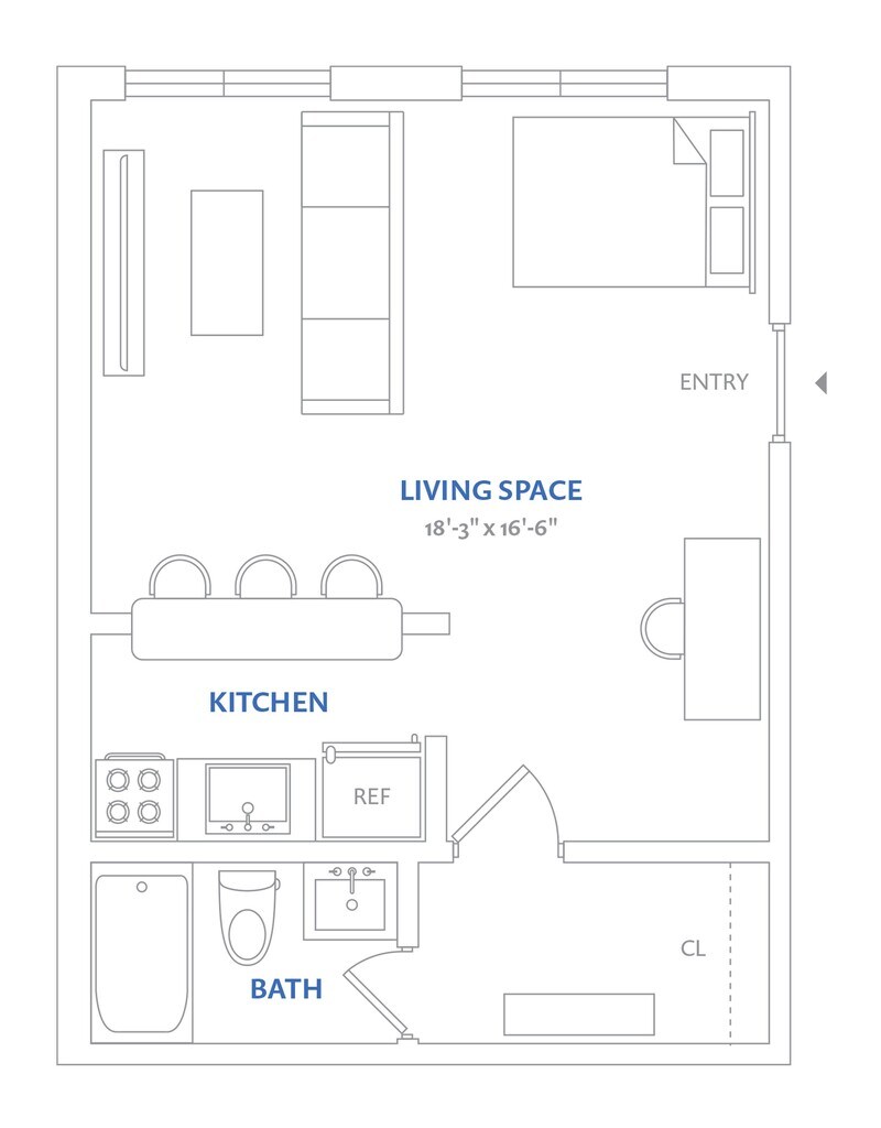 Estudio, 1 Baño, 425 pies²Disponible AhoraGalería del Modelo