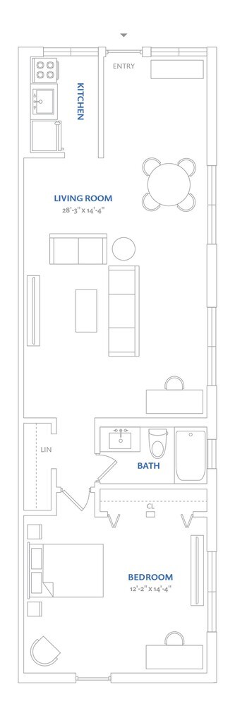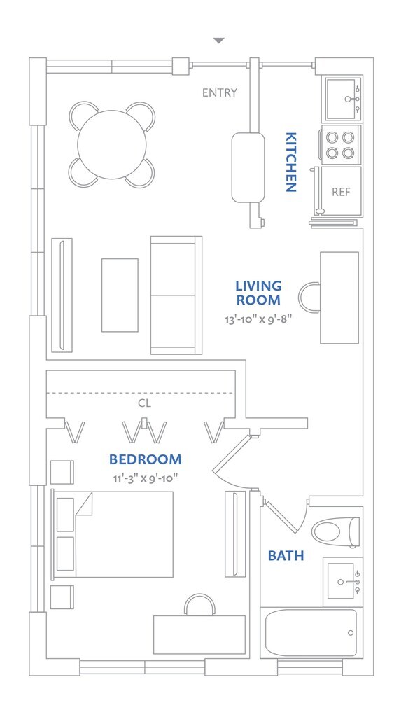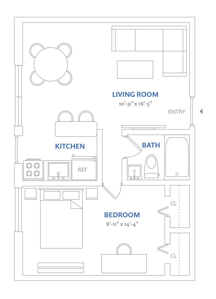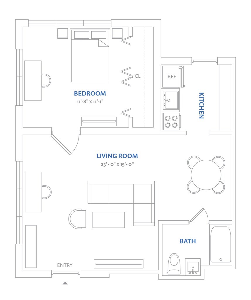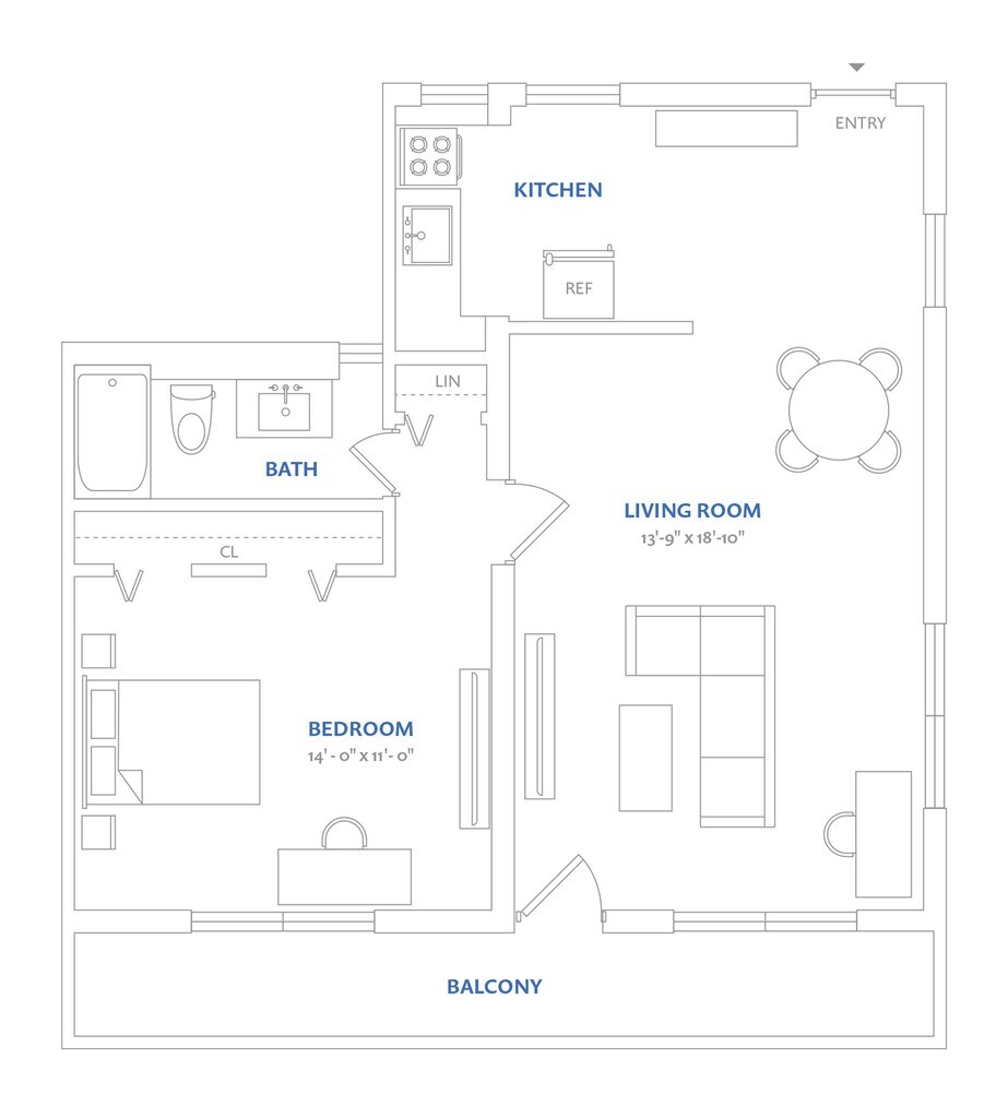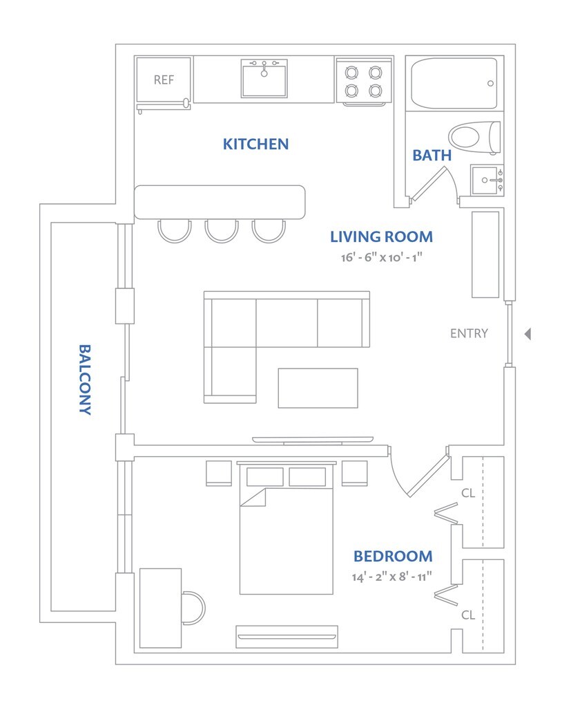 Estudio, 1 Baño, 425 pies²Disponible AhoraGalería del Modelo