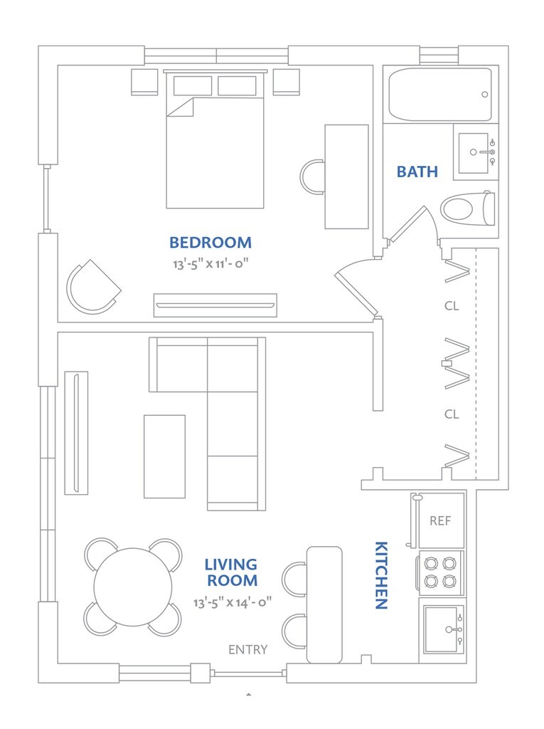Modelo de apartamento: Residence 50, Floor 1Desde $1,856Estudio, 1 Baño, 425 sq ftDisponible AhoraPlanosFotos![]()