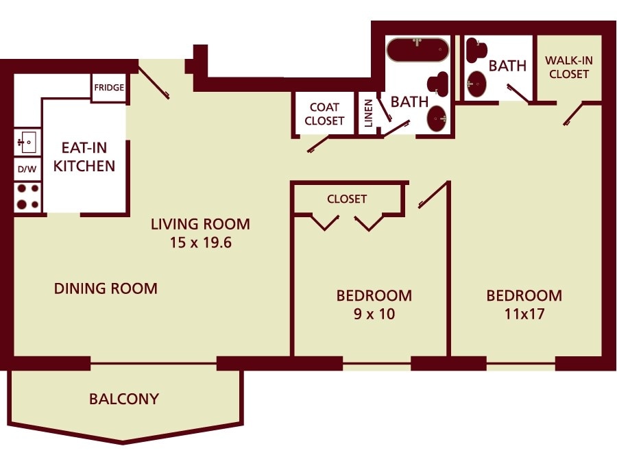 Modelo de apartamento: 2BR 1.5BA$1,0902 Dormitorios, 1.5 Baños, 888 sq ftDisponible Ahora![]()