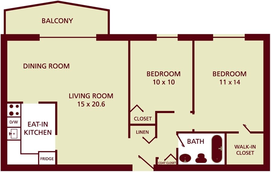 Modelo de apartamento: 1BR RegularDesde $8901 Dormitorio, 1 Baño, 533 sq ftDisponible Ahora![]()