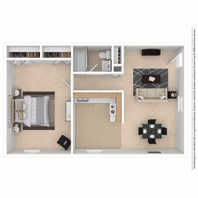 1 Dormitorio, 1 Baño, 585 pies²Disponible AhoraEl más baratoEsta opción tiene los precios más bajos para este modeloGalería del Modelo